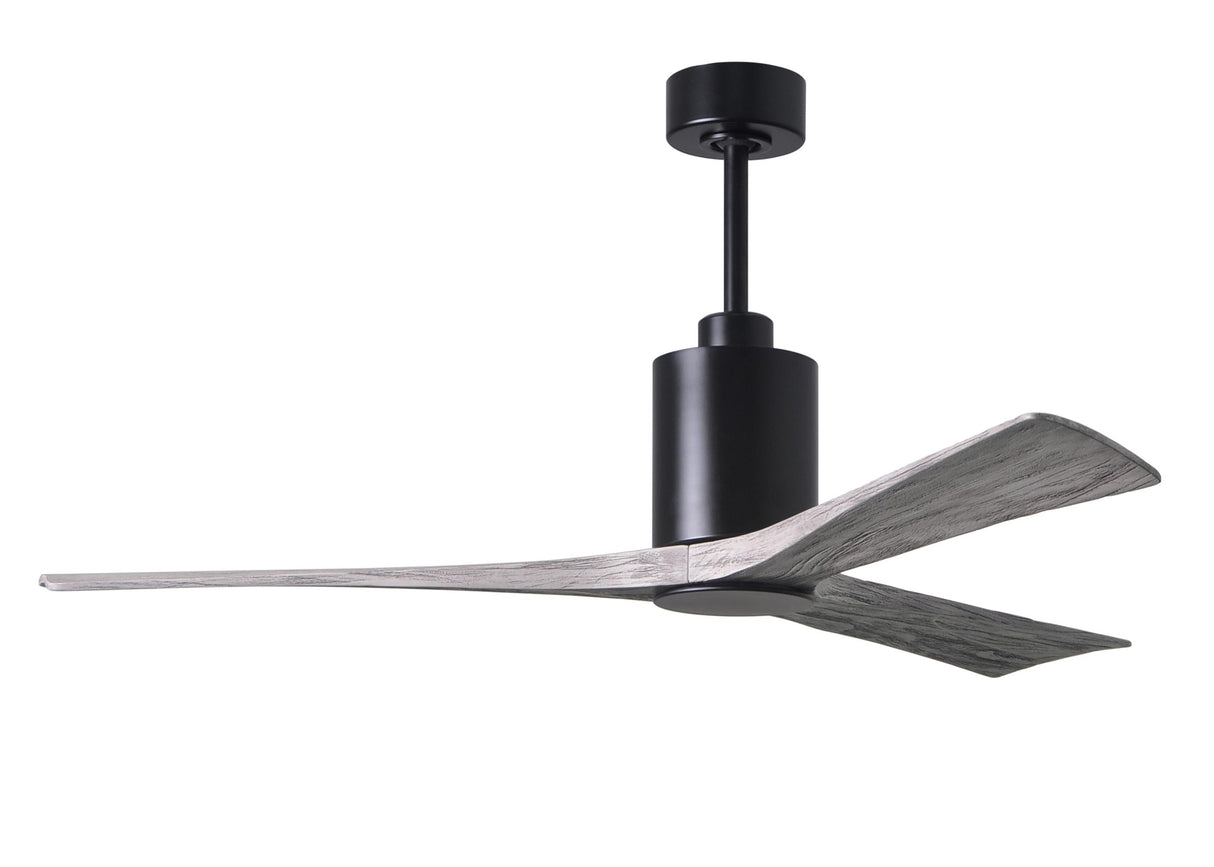 Matthews Fan PA3-BK-BW-60 Patricia-3 three-blade ceiling fan in Matte Black finish with 60” solid barn wood tone blades and dimmable LED light kit