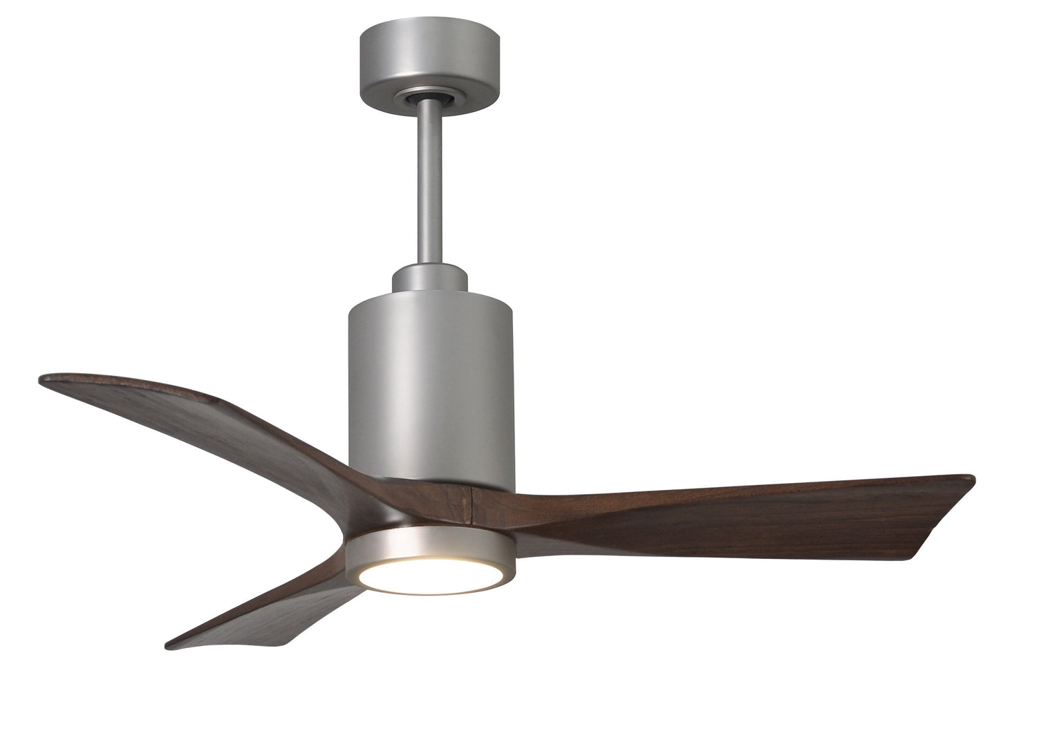 Matthews Fan PA3-BN-WA-42 Patricia-3 three-blade ceiling fan in Brushed Nickel finish with 42” solid walnut tone blades and dimmable LED light kit