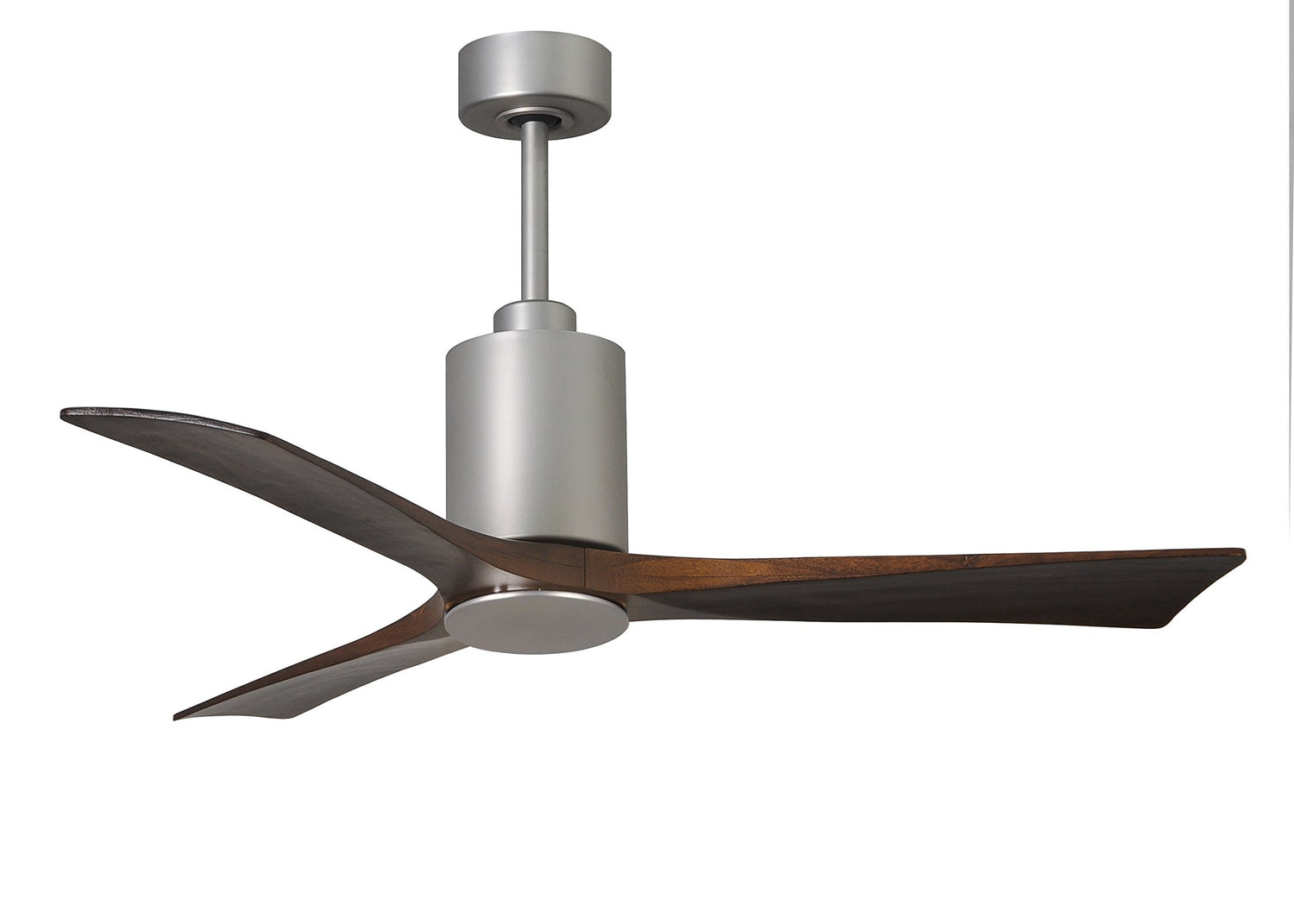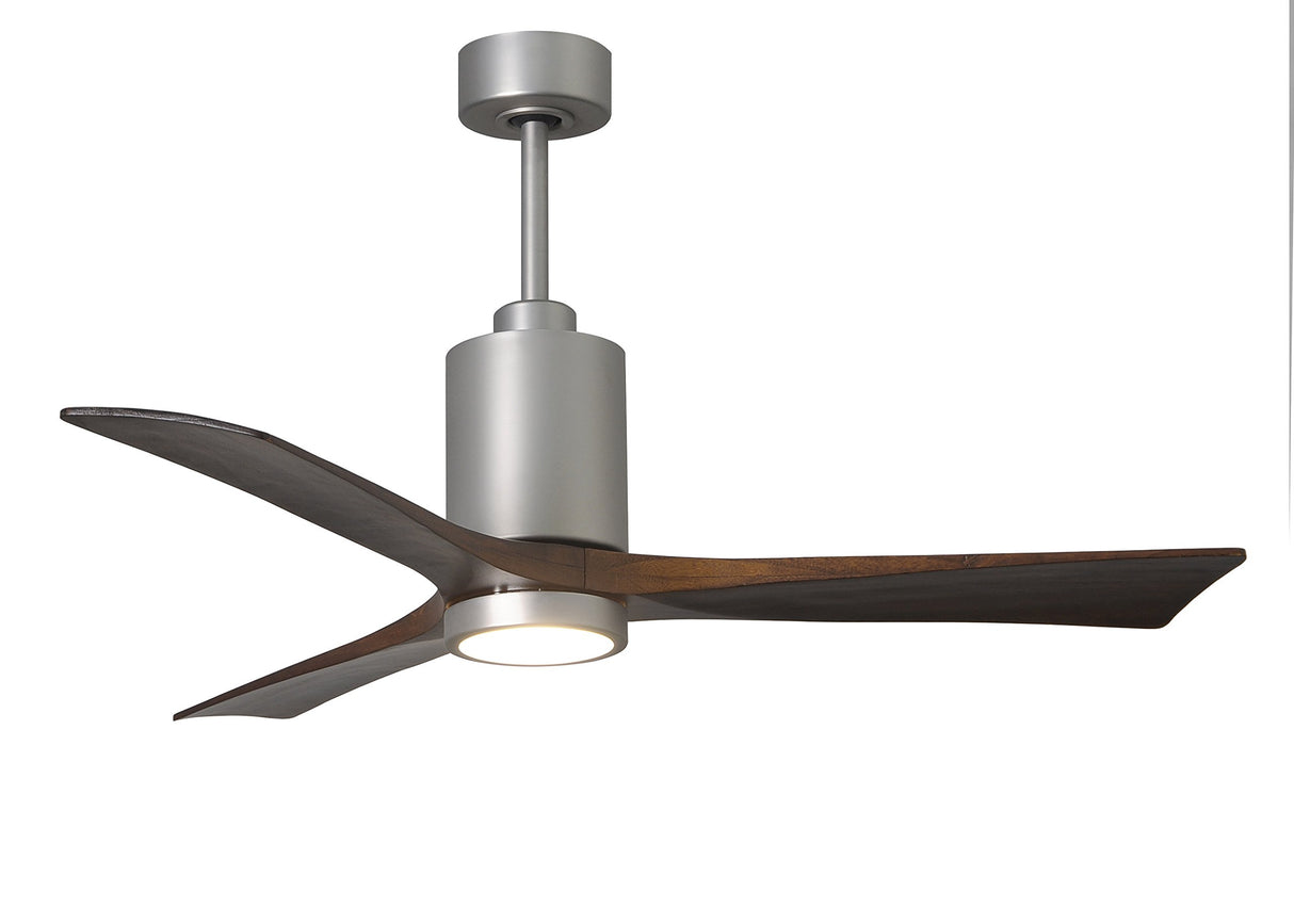 Matthews Fan PA3-BN-WA-52 Patricia-3 three-blade ceiling fan in Brushed Nickel finish with 52” solid walnut tone blades and dimmable LED light kit