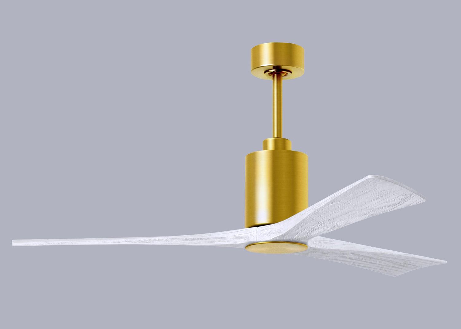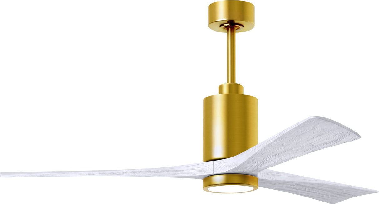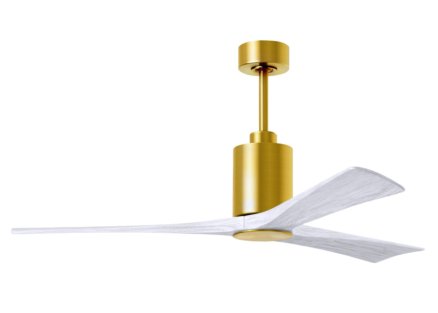 Matthews Fan PA3-BRBR-MWH-60 Patricia-3 three-blade ceiling fan in Brushed Brass finish with 60” solid matte white wood blades and dimmable LED light kit