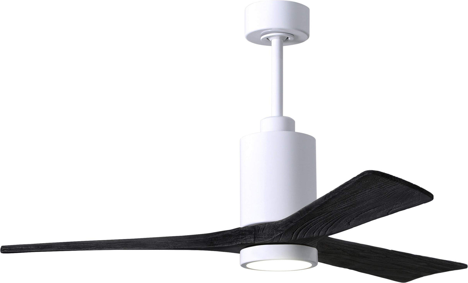 Matthews Fan PA3-WH-BK-52 Patricia-3 three-blade ceiling fan in Gloss White finish with 52” solid matte black wood blades and dimmable LED light kit
