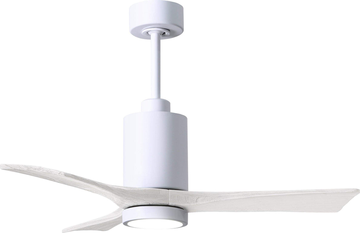 Matthews Fan PA3-WH-MWH-42 Patricia-3 three-blade ceiling fan in Gloss White finish with 42” solid matte white wood blades and dimmable LED light kit