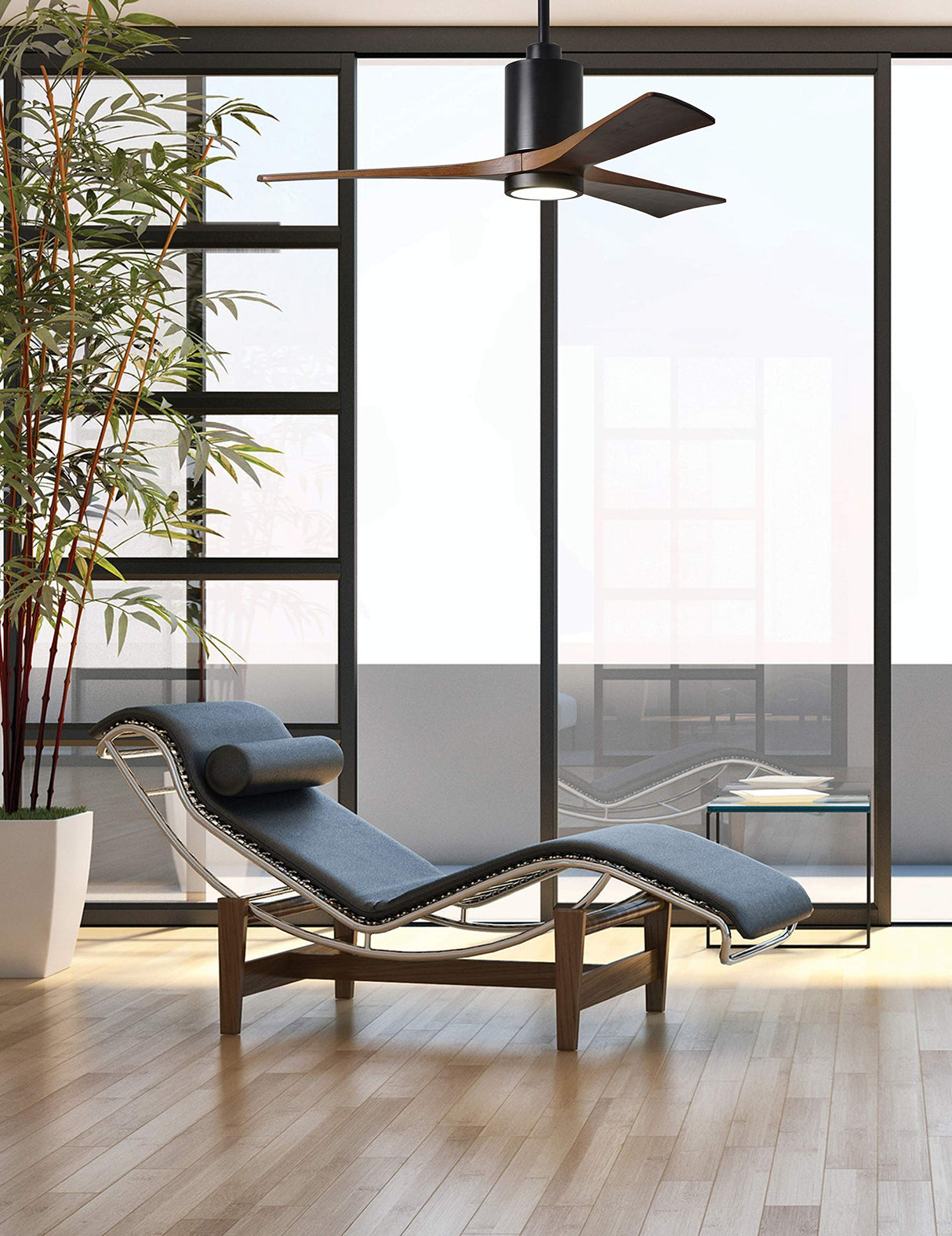A complement to any commercial or residential space, the Patrícia–3 seamlessly combines innovation with simple, refined design. Its elegant aesthetic belies its robust construction. Solid wood walnut, matte black, matte white, or barn wood tone blades revolve around a balanced, cylindrical DC motor housing. Air is circulated efficiently with barely more than a whisper. An eco-conscious LED light kit completes the package, making Patrícia–3 sophisticated, efficient and green. Constructed of cast aluminum and heavy stamped steel, the Patrícia–3 carries a limited lifetime warranty.