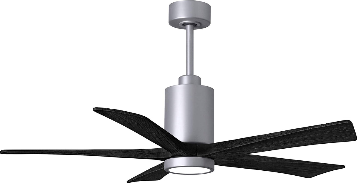 Matthews Fan PA5-BN-BK-52 Patricia-5 five-blade ceiling fan in Brushed Nickel finish with 52” solid matte black wood blades and dimmable LED light kit