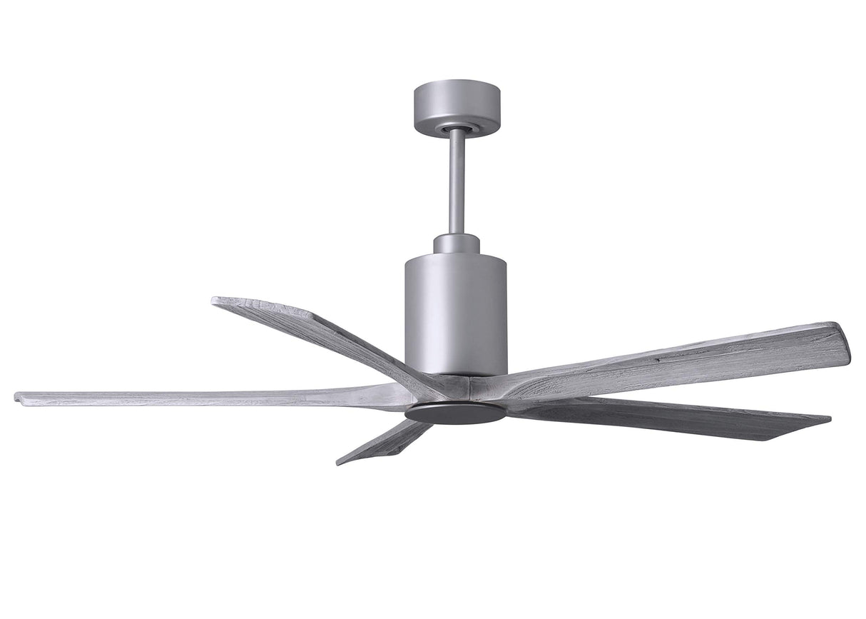Matthews Fan PA5-BN-BW-60 Patricia-5 five-blade ceiling fan in Brushed Nickel finish with 60” solid barn wood tone blades and dimmable LED light kit