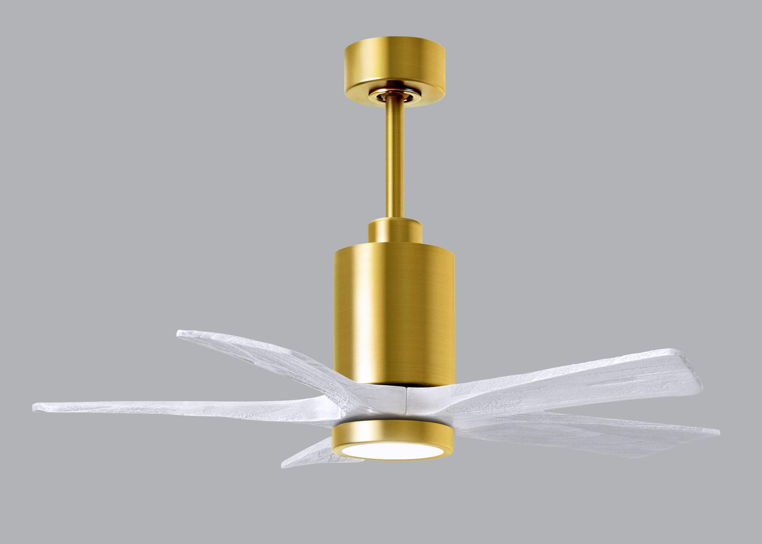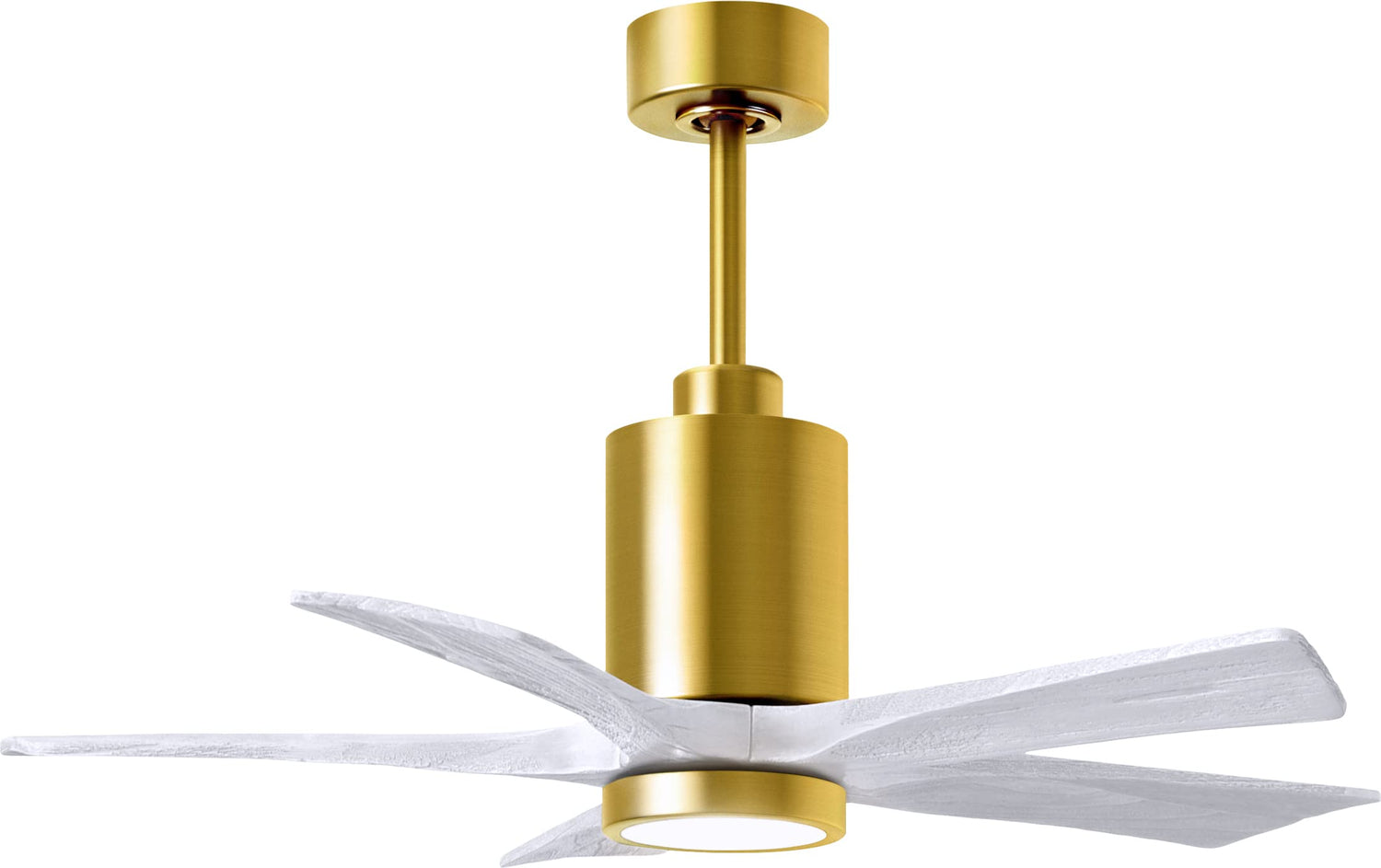 Matthews Fan PA5-BRBR-MWH-42 Patricia-5 five-blade ceiling fan in Brushed Brass finish with 42” solid matte white wood blades and dimmable LED light kit