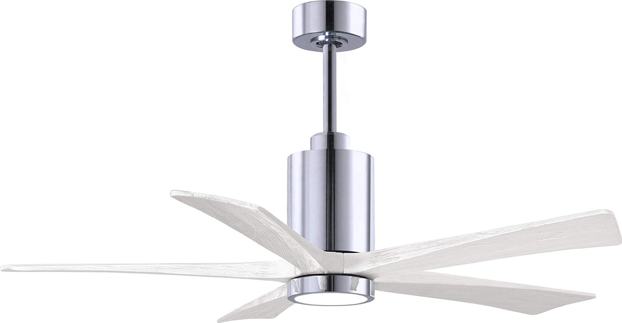 Matthews Fan PA5-CR-MWH-52 Patricia-5 five-blade ceiling fan in Polished Chrome finish with 52” solid matte white wood blades and dimmable LED light kit