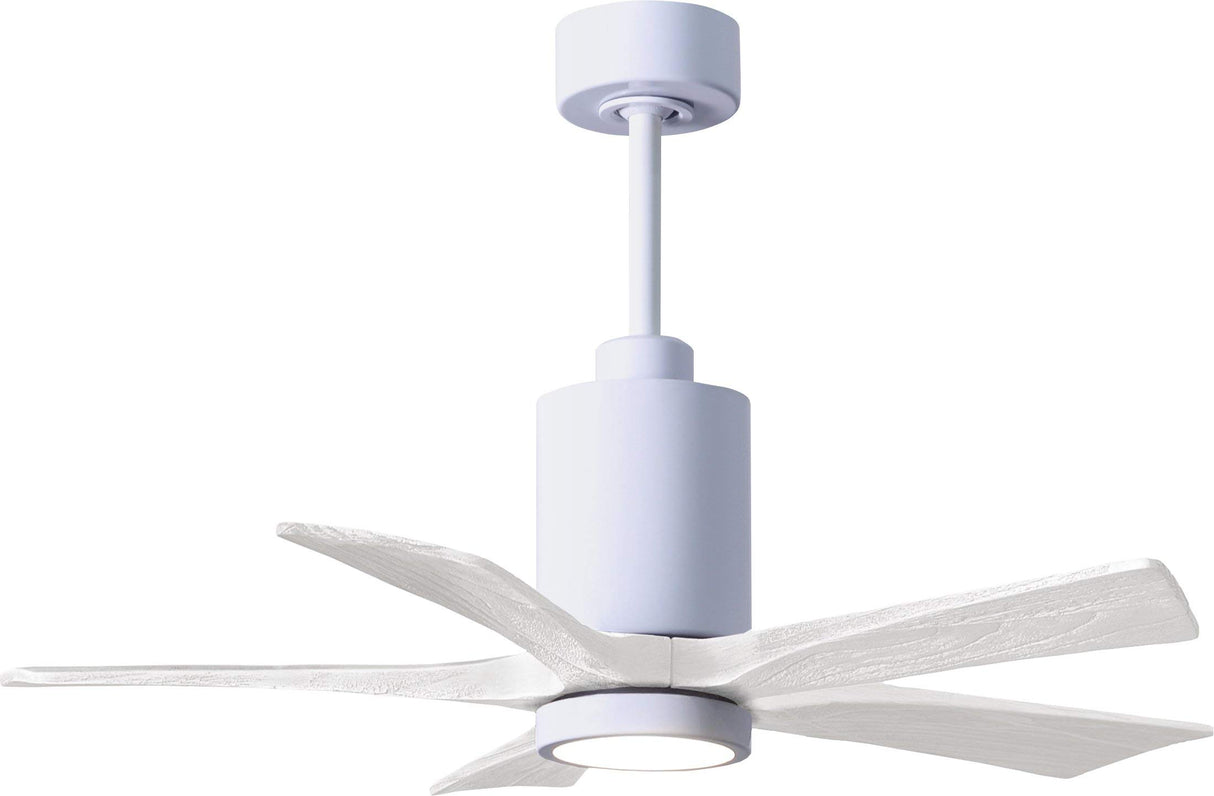 Matthews Fan PA5-WH-MWH-42 Patricia-5 five-blade ceiling fan in Gloss White finish with 42” solid matte white wood blades and dimmable LED light kit