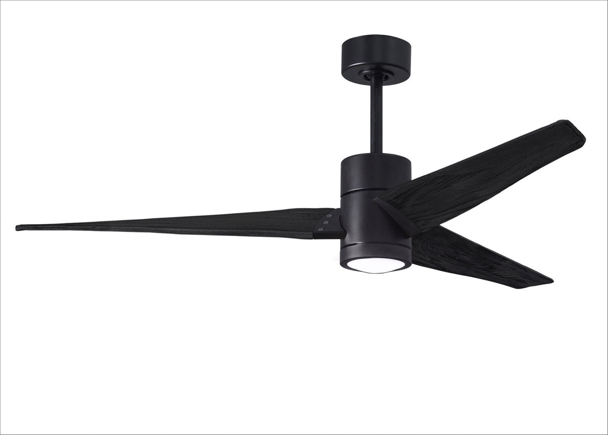 Matthews Fan SJ-BK-BK-60 Super Janet three-blade ceiling fan in Matte Black finish with 60” solid matte blade wood blades and dimmable LED light kit