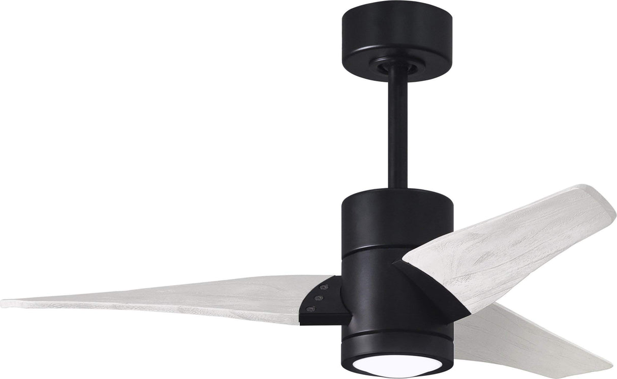 Matthews Fan SJ-BK-MWH-42 Super Janet three-blade ceiling fan in Matte Black finish with 42” solid matte white wood blades and dimmable LED light kit