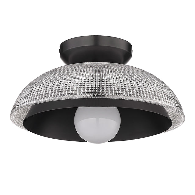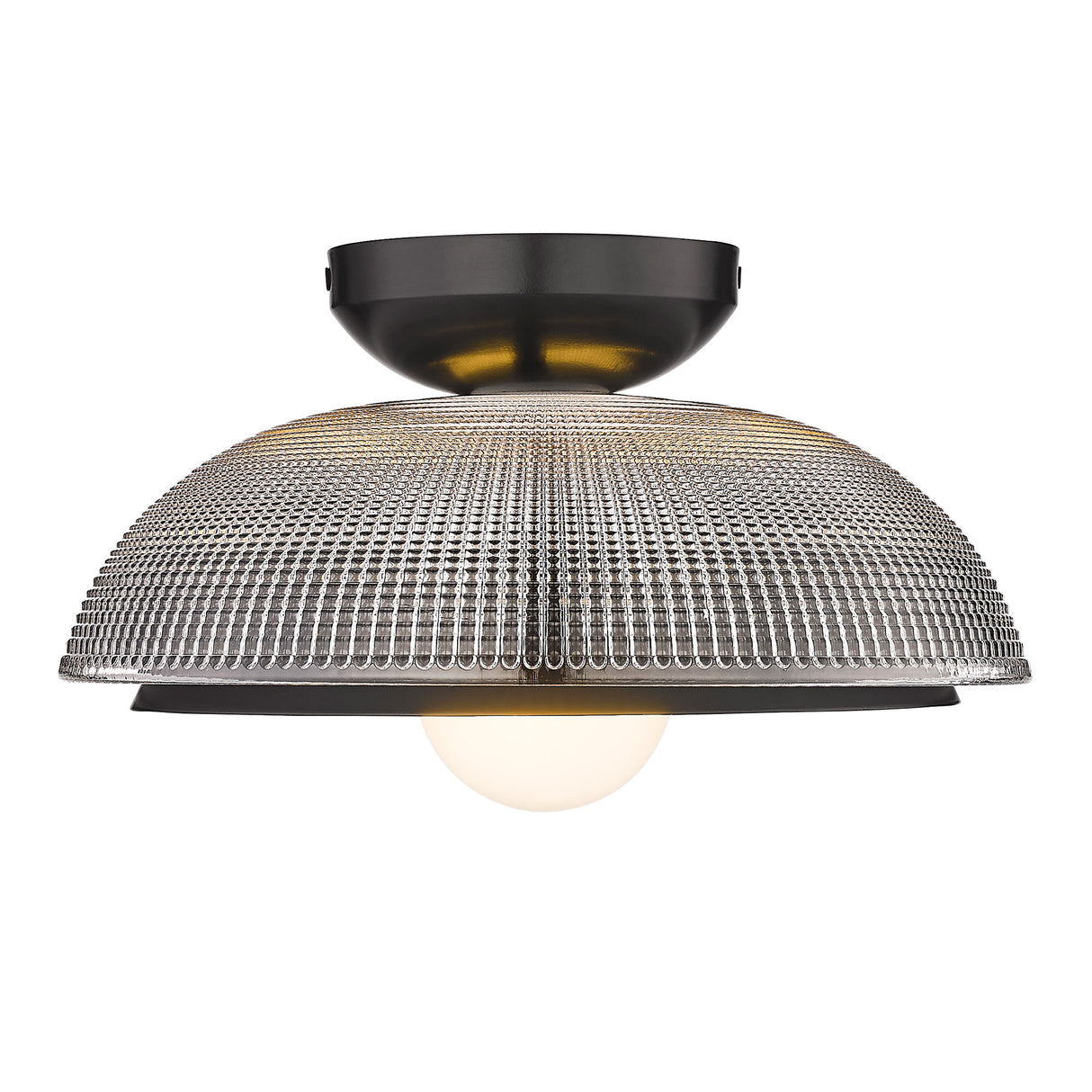 Crawford BLK Flush Mount in Matte Black with Retro Prism Glass Shade