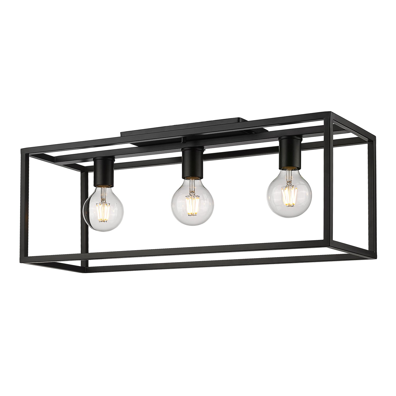 Wesson is a clean contemporary collection that is available in multiple finishes. The industrial look of the series is enhanced by exposed medium-based bulbs. A bold, square open-bottom geometric cage adds visual interest. Complete the modern, rustic look by installing Edison Bulbs. These flush mounts are generously sized for hallways and foyers.