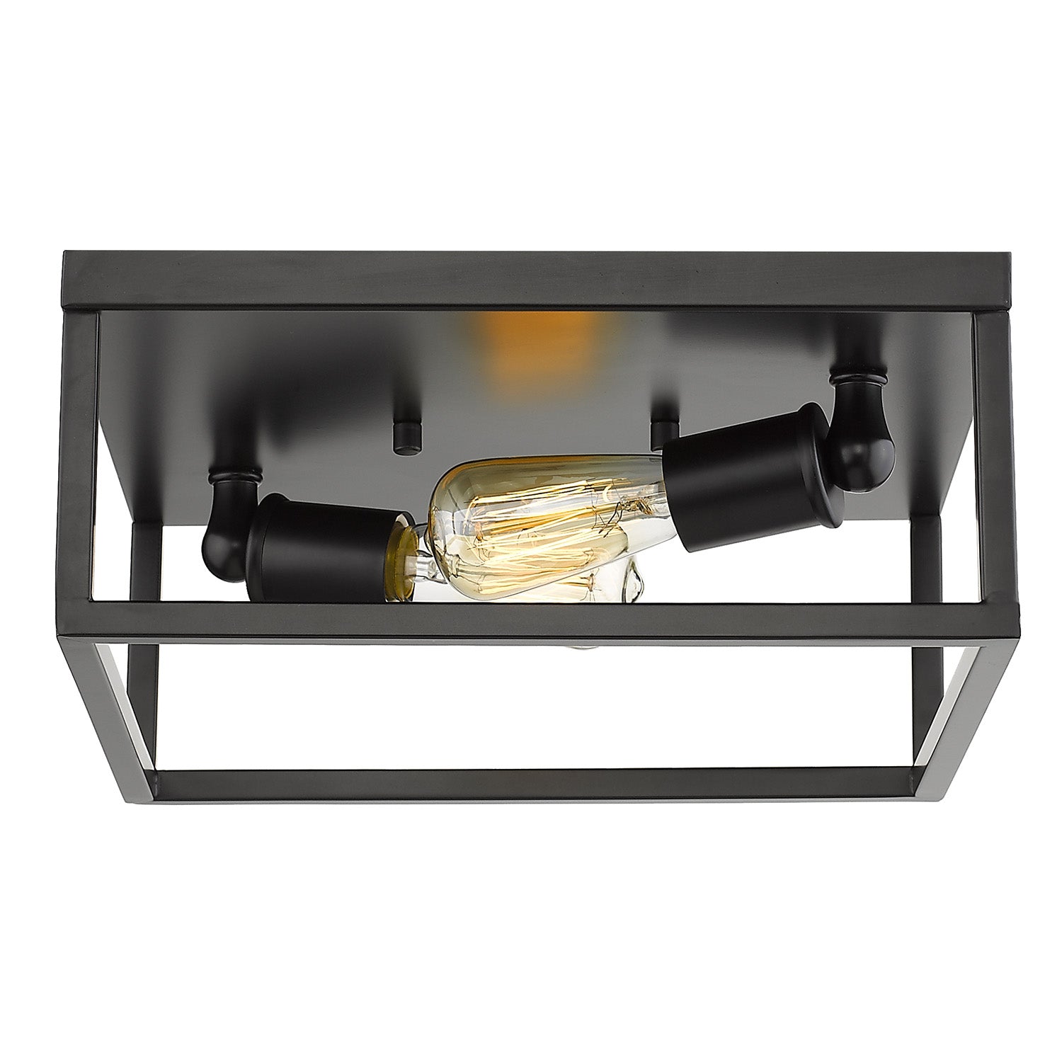 Wesson is a clean contemporary collection that is available in multiple finishes. The industrial look is enhanced by the exposed medium-based bulbs inside the square tubing of the open, geometric cages. Complete the modern, rustic look by installing Edison Bulbs. This flush mount is perfect for hallways and foyers.