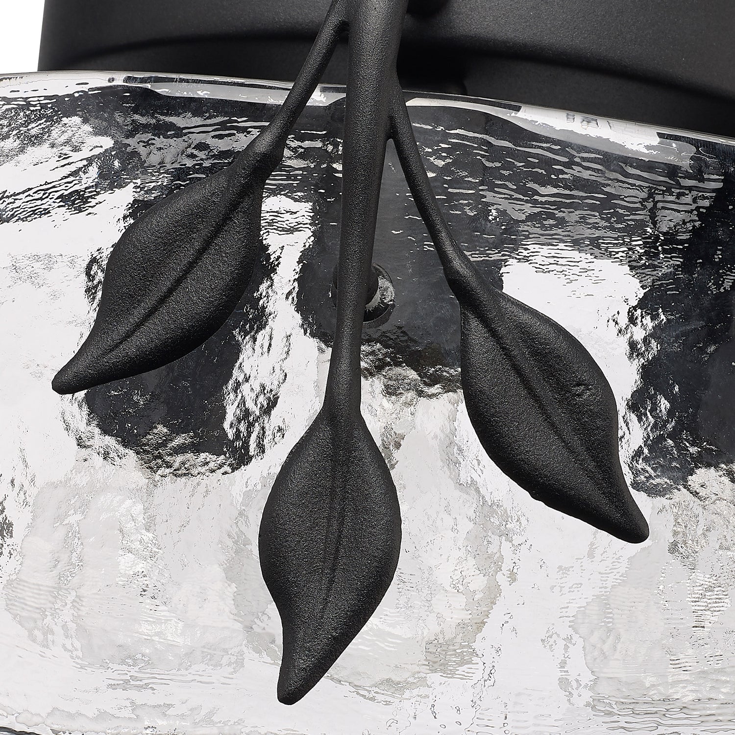 Tastefully convey your love of nature with the beautiful Calla Collection. Decorative elements like Hammered Water Glass and plant-like metal details take center stage in the transitional design. Choose between contemporary Natural Black or sophisticated White Gold.