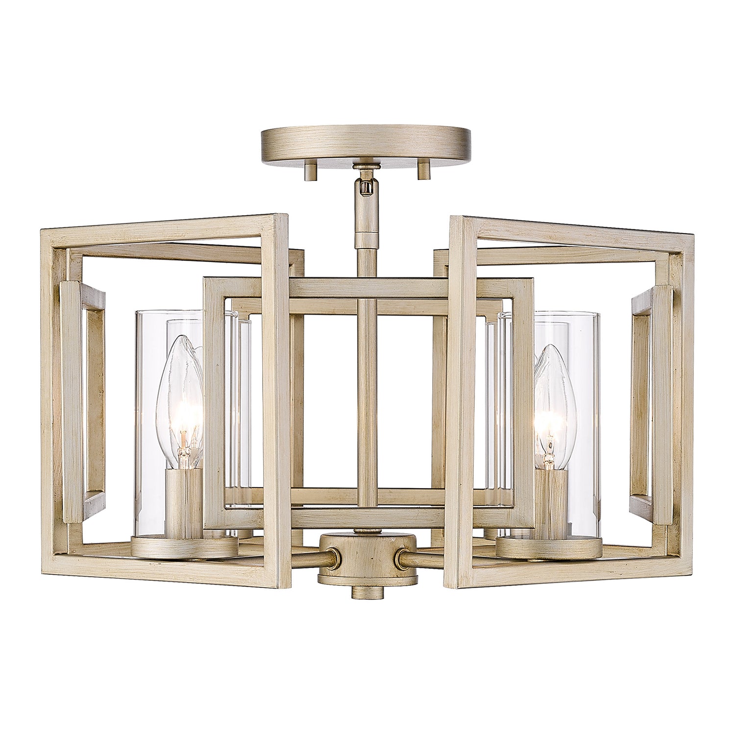 Sleek angles and geometric forms make ultra-modern statements in the Marco collection. The series is offered in multiple finishes that heighten the light airy look of the silhouettes. Clear glass cylinders house stately candelabra bulbs.