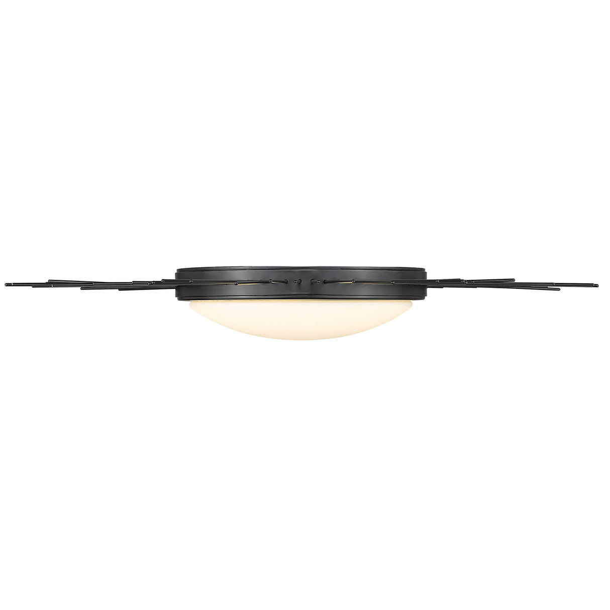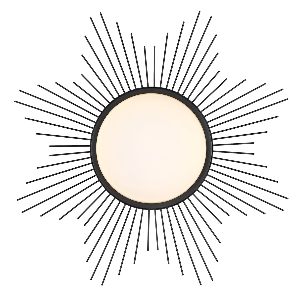 Enhance your space with Kieran. Artsy in nature, this collection of flush mounts with ceiling medallions is playful yet functional. Thin metal pieces in varying lengths form a sunburst pattern that creates a halo effect around the fixture. Damp-rated, this elegant series sits close-to-ceiling and is perfect for dressing up a closet, hall, bedroom, or breezeway. Opal glass shades diffuse the bright LED panels. The fixtures are available in multiple sophisticated finishes. This flush mount provides wide-spread ambient lighting and is a perfect fit in your home.