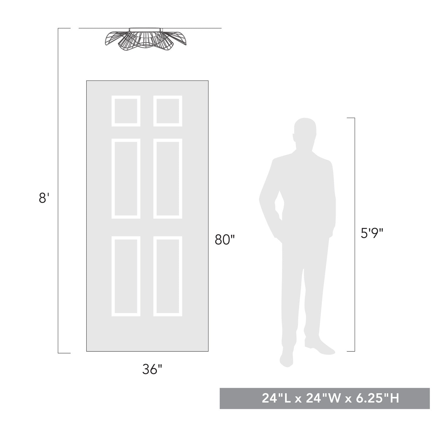 Elena Flush Mount - 24" in Natural Black with Opal Glass Shade