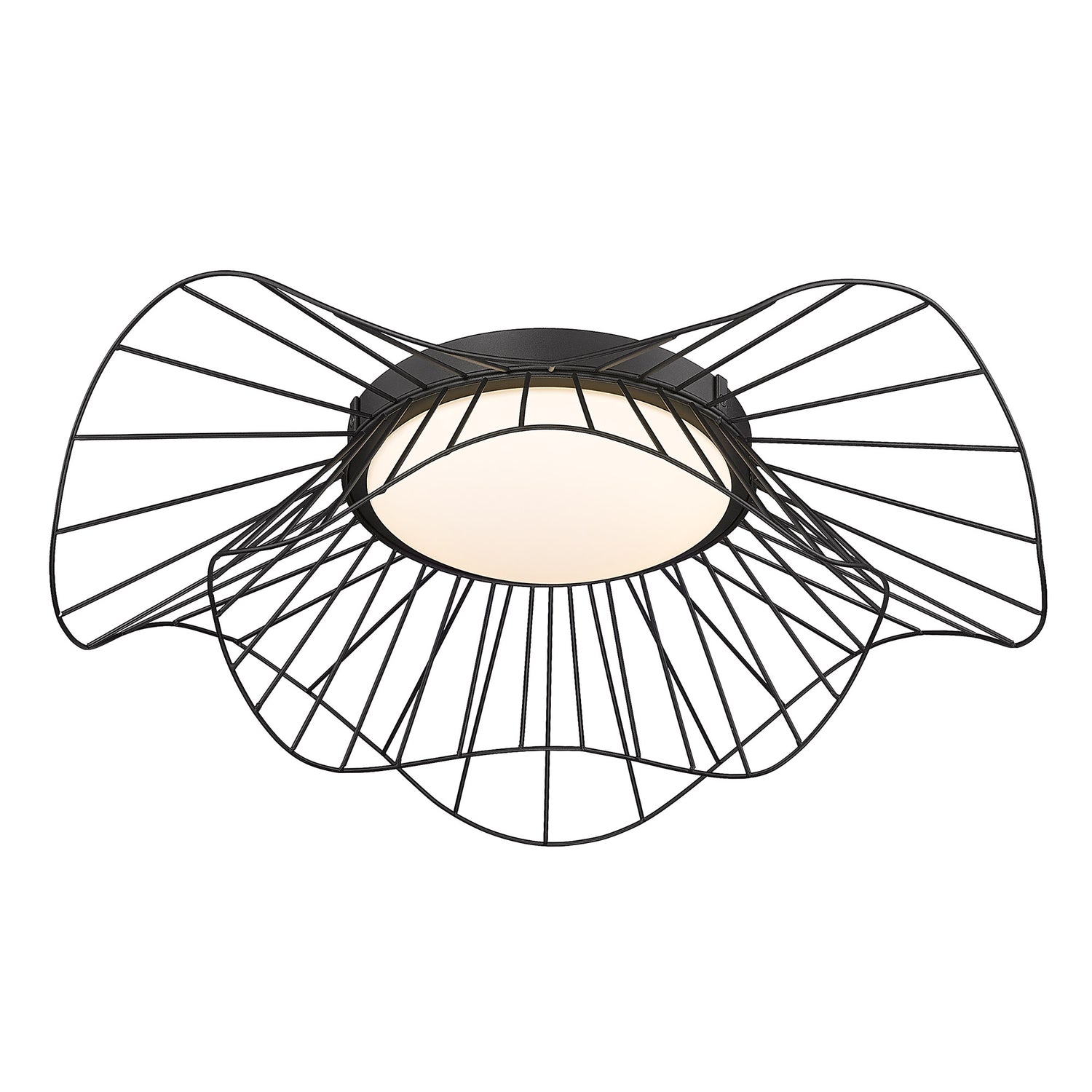 Artful and uncompromised, Elena stretches the imagination of contemporary close-to-ceiling lighting. An oversized wireframe is sculpted into alternating bends and curves to form an attractive, organic pattern. A slightly textured Natural Black finish contrasts an opal glass shade. Beneath the shade, an integrated LED shines brightly. Hang these damp-rated fixtures throughout your home.