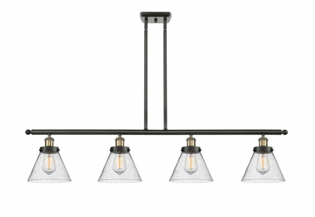 Innovations Lighting Ballston Large Cone LED 48 inch Black Antique Brass Island Light Ceiling Light in Seedy Glass 916-4I-BAB-G44-LED
