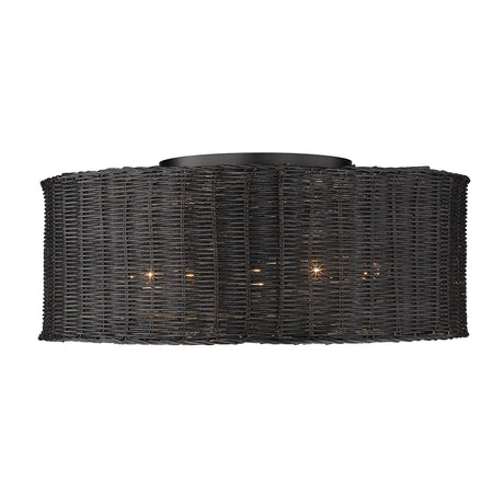 Regular price $21999UnavailableIn stock online (4 Units)Erma 5 Light Flush Mount in Matte Black with Black Wicker Shade