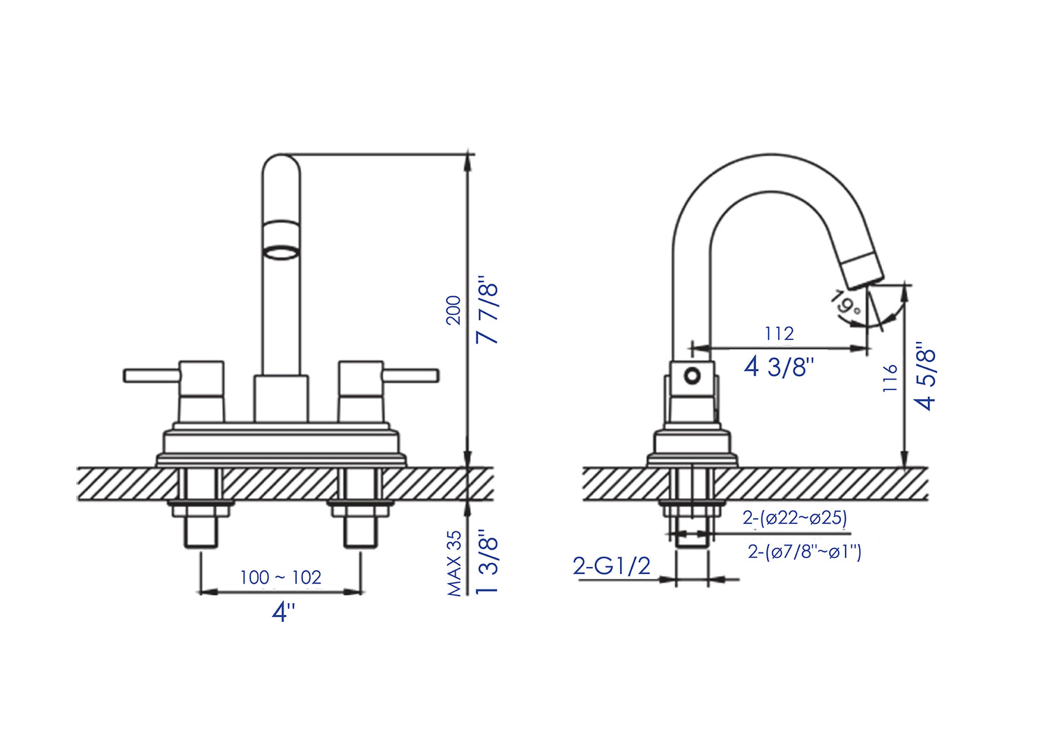 ALFI brand center set deck mount bathroom faucets combine modern and traditional elegance, making them a great addition to a variety of décor styles. Smooth water flow and precise water control offer functional and practical appeal with a touch of sophistication. Gooseneck spout and thin lever handles add the finishing touches.