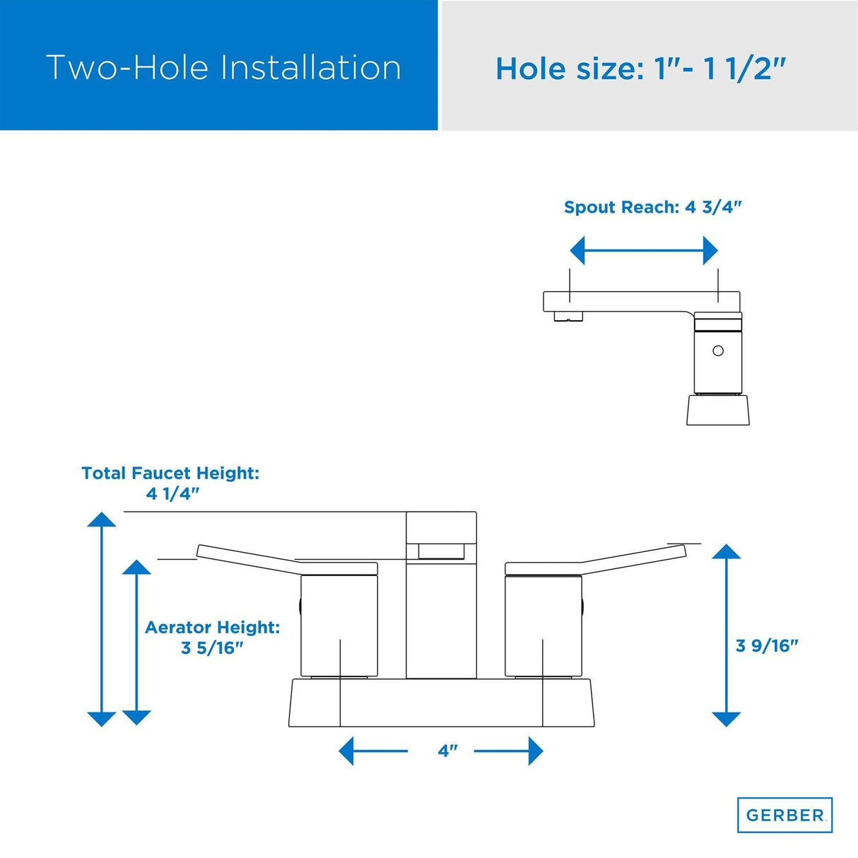 Product DescriptionMinimal design meets function in the new Avian bath collection. Clean, modern lines and distinct edges make it contemporary yet ageless. Simplistic linear handles require the lightest of touch, and integrate seamlessly into the contemporary bathroom.From the ManufacturerFor nearly 20 years, the kitchen and bath industry has known Danze as a leader in product design and beautiful styling. What industry professionals and homeowners may not have known is that Danze has a sister company, Gerber - an 85-year-old manufacturer of some of the highest performing, most reliable products on the market. To best meet the diverse and ever-changing needs of home products, Danze has transformed to be Danze by Gerber, a perfect blend of the handcrafted, trusted performance of Gerber on the inside and beautiful design on the outside. The Danze by Gerber product combination can be found in a range of kitchen and bath faucets, bath accessories and shower systems. A thoughtful balance of form and function. Inspired, beautiful design on the outside. Handcrafted, trusted performance on the inside. A combination that results in true value and commitment. You can call it a breath of fresh air. We call it Danze by Gerber. Product Information Product Overview Connection Type: 2-1/2 -14npsm ConnectionFlow Rate: 1.2gpm Max Flow Rate @ 60 psiInstallation: 3-Hole InstallationSpray/Stream Function: Features a Clear Non-Splash Laminar Water StreamBrand: Gerber Features Cartridge Type: Includes Durable Ceramic Disc Valve for Drip-Free PerformanceSpout Swivel: Fixed SpoutWarranty: Limited lifetime Components Drain Type: Includes Metal Touch-Down Drain Assembly for Easy Installation
