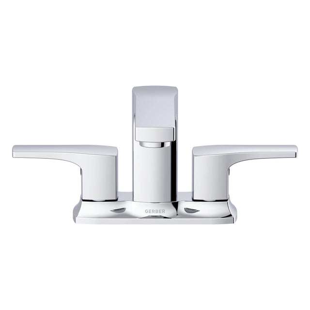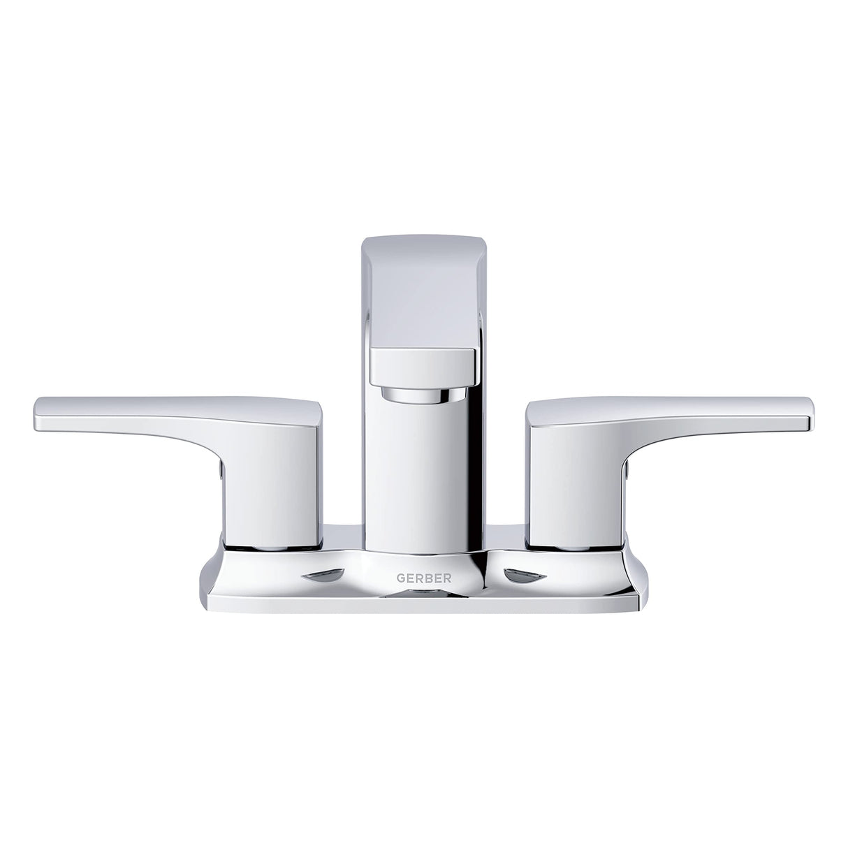 With modern lines and soft curves, the Tribune centerset bathroom faucet sets the stage for style. Square forms are offset by gently flaring curves that flow together to form a modern aesthetic. Unique Vertical Lift Rod is discreetly designed into the back of the faucet spout for an uninterrupted look. Offering a full complement of coordinated sink, shower, and tub faucets and trim, let the Tribune's softly contoured square forms and stunning finish options elevate your bathroom to a modern level. Product Information Product Overview Connection Type: 1/2 -14npsm ConnectionFlow Rate: 1.2gpm Max Flow Rate @ 60 psiInstallation: 3-Hole InstallationSpray/Stream Function: Features a clear no-splash Laminar Flow for a more hygienic water experienceBrand: Gerber Features Optional Temperature Indicators includedOptional Lift Rod Hole Plug includedCartridge Type: Includes Durable Ceramic Disc Valve for Drip-Free PerformanceWarranty: Limited lifetime Description With modern lines and soft curves the Tribune centerset bathroom faucet sets the stage for style. Square forms are offset by gently flaring curves that flow together to form a modern aesthetic. Unique Vertical Lift Rod is discreetly designed into the back of the faucet spout for an uninterrupted look. Offering a full complement of coordinated sink shower and tub faucets and trim let the Tribune s softly contoured square forms and stunning finish options elevate your bathroom to a modern level. Components Cartridge Included: YesDrain Type: Includes 50/50 Pop-Up Drain Assembly for Easy InstallationSold Separately Optional: Alternative Flow Rates Available with Spray Water Stream: 1.0 gpm when used with Da603a50n aerator ; 0.5 gpm when used with Da603a51n aerator