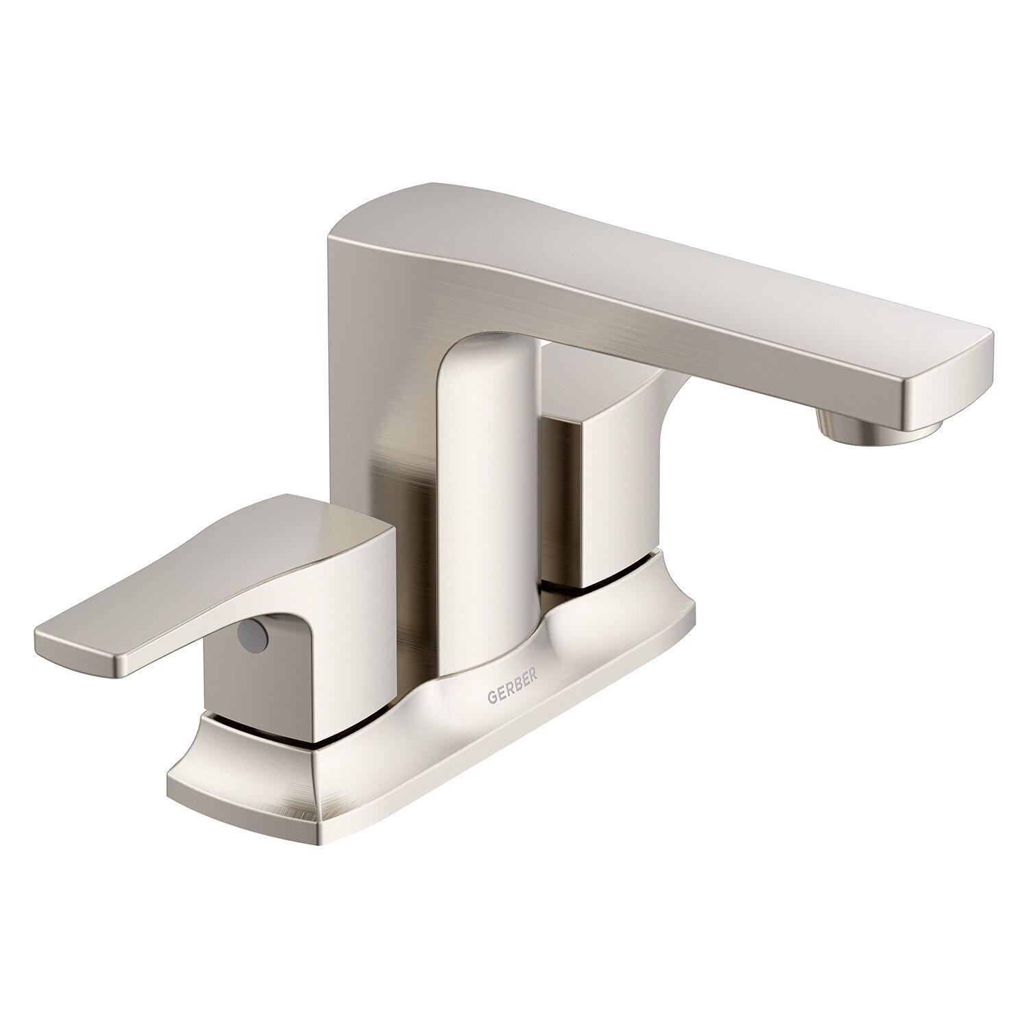 With modern lines and soft curves, the Tribune centerset bathroom faucet sets the stage for style. Square forms are offset by gently flaring curves that flow together to form a modern aesthetic. Unique Vertical Lift Rod is discreetly designed into the back of the faucet spout for an uninterrupted look. Offering a full complement of coordinated sink, shower, and tub faucets and trim, let the Tribune's softly contoured square forms and stunning finish options elevate your bathroom to a modern level. Product Information Product Overview Connection Type: 1/2 -14npsm ConnectionFlow Rate: 1.2gpm Max Flow Rate @ 60 psiInstallation: 3-Hole InstallationSpray/Stream Function: Features a clear no-splash Laminar Flow for a more hygienic water experienceBrand: Gerber Features Optional Temperature Indicators includedOptional Lift Rod Hole Plug includedCartridge Type: Includes Durable Ceramic Disc Valve for Drip-Free PerformanceWarranty: Limited lifetime Description With modern lines and soft curves the Tribune centerset bathroom faucet sets the stage for style. Square forms are offset by gently flaring curves that flow together to form a modern aesthetic. Unique Vertical Lift Rod is discreetly designed into the back of the faucet spout for an uninterrupted look. Offering a full complement of coordinated sink shower and tub faucets and trim let the Tribune s softly contoured square forms and stunning finish options elevate your bathroom to a modern level. Components Cartridge Included: YesDrain Type: Includes 50/50 Pop-Up Drain Assembly for Easy InstallationSold Separately Optional: Alternative Flow Rates Available with Spray Water Stream: 1.0 gpm when used with Da603a50n aerator ; 0.5 gpm when used with Da603a51n aerator