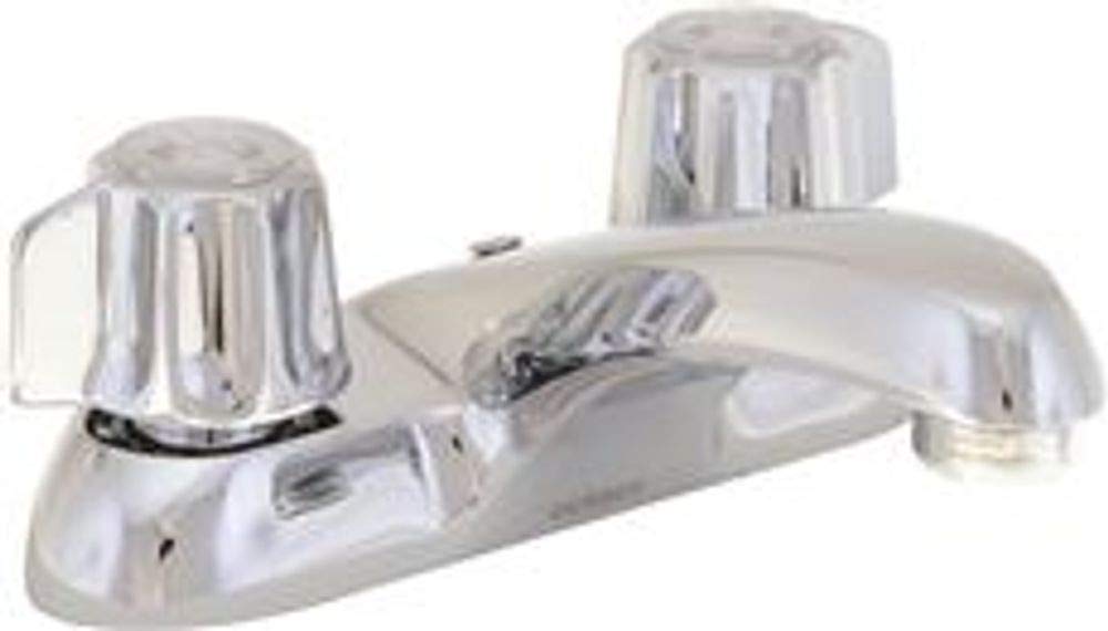 Compression cartridges, 4 inch centers, 3-hole installation. Top mount design. Metal fluted handles with acrylic idex buttons. One piece heavy chrome plated, solid brass casting. 2.2 gpm maximum aerator @ 60 psi. Heavy chrome plated finish. Limited lifetime warranty. Chrome Gerber Classics Two Handle Centerset Lavatory Faucet W/ Metal Fluted Handles & Less Drain W/ Button 1.2GPM