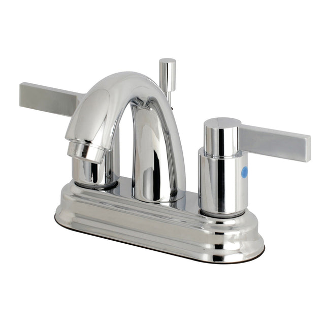 The chic fashion of this faucet is distinguished by its expressive artistry and flat, ergonomic levers. Centerset bathroom faucets are ideal for smaller bathrooms and feature an easy 3-hole installation. The NuvoFusion 4-inch centerset bathroom faucet with retail pop-up and its featured sturdy brass construction and premium polished chrome finish are guaranteed to glamorize your home's modern ensemble for years to come. Revive the obsolete with the illustrious prestige of this fixture. A matching finish drain is also included.