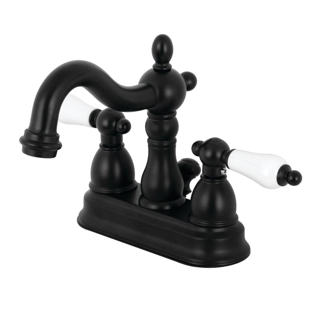 Heritage KB1600PL Two-Handle 3-Hole Deck Mount 4" Centerset Bathroom Faucet with Plastic Pop-Up, Matte Black