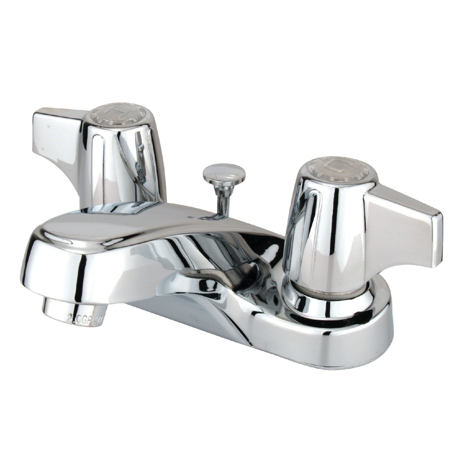 Americana KB160B Two-Handle 3-Hole Deck Mount 4" Centerset Bathroom Faucet with Brass Pop-Up, Polished Chrome