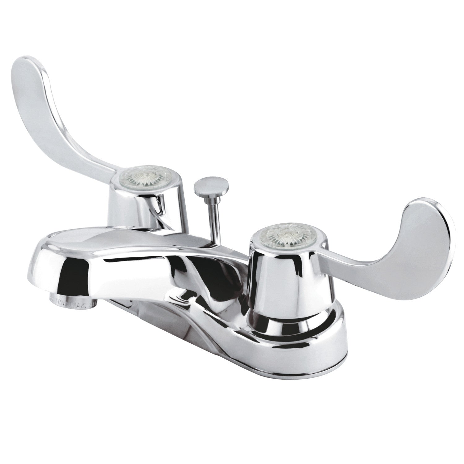 The exquisite design of this faucet tastefully flatters the elegant architecture of traditional homes with its fine detailing. Centerset bathroom faucets are ideal for smaller bathrooms and feature an easy 3-hole installation. The Vista 4-inch centerset bathroom faucet and its featured sturdy brass construction and premium polished chrome finish are guaranteed to glamorize your home's traditional ensemble for years to come. A matching finish drain is also included.