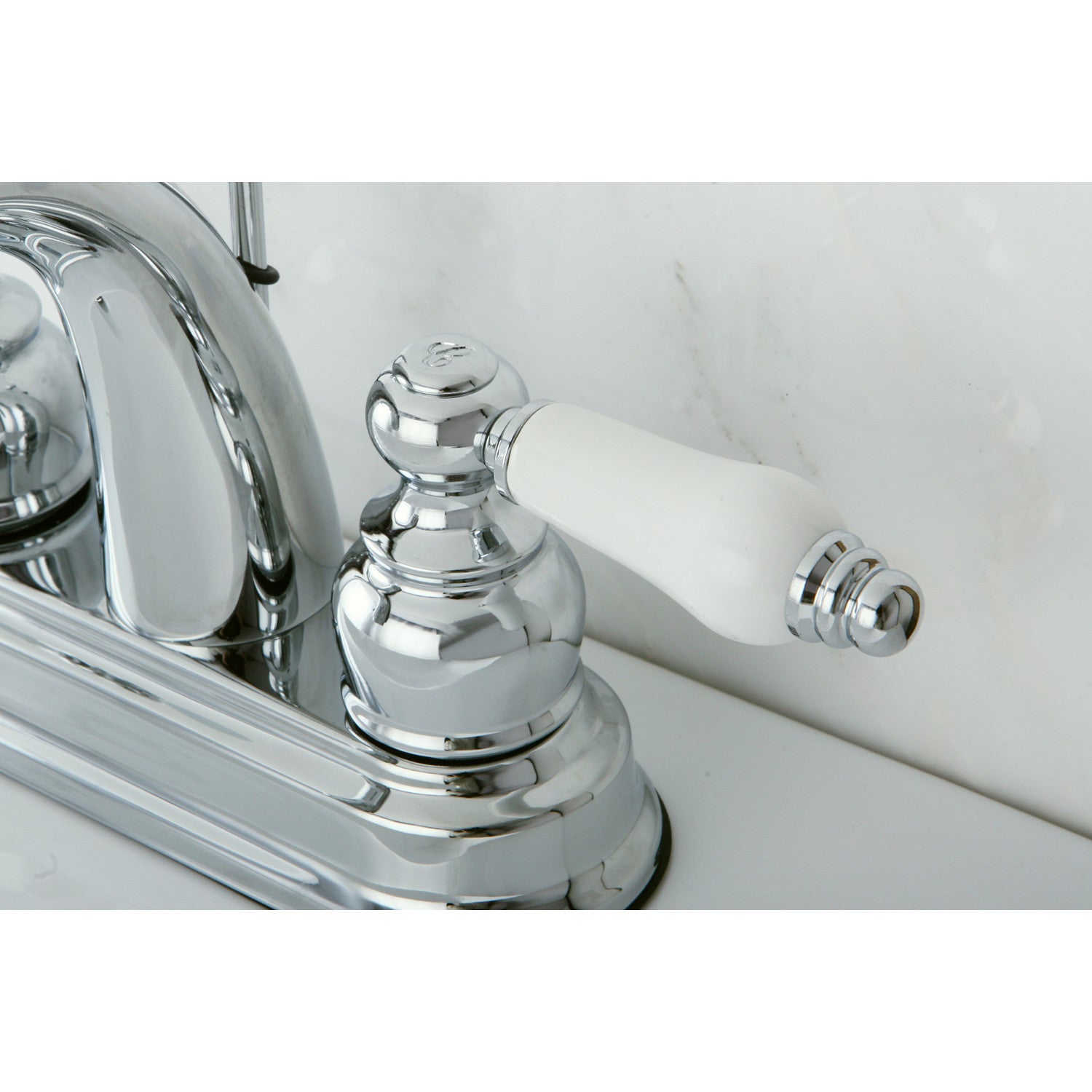 Classical artistry from the late 19th Century to early 20th Century is mirrored beautifully within this faucet's traditional charm. Centerset bathroom faucets are ideal for smaller bathrooms and feature an easy 3-hole installation. The Restoration 4-inch centerset bathroom faucet and its featured sturdy brass construction and premium polished chrome finish are guaranteed to glamorize your home's traditional ensemble for years to come. Bring this faucet to your home to offer a touch of old design and exquisite detail. A matching finish drain is also included.