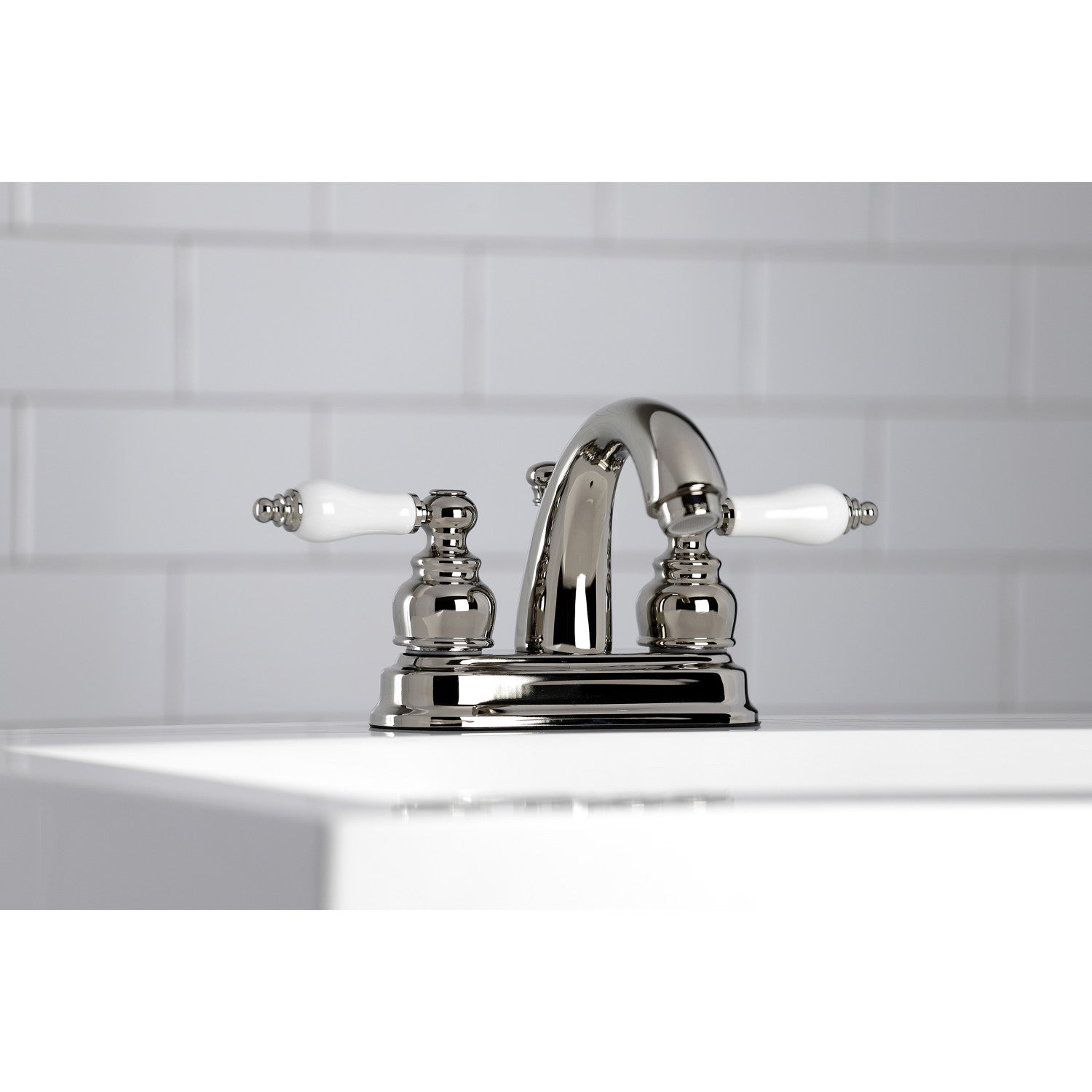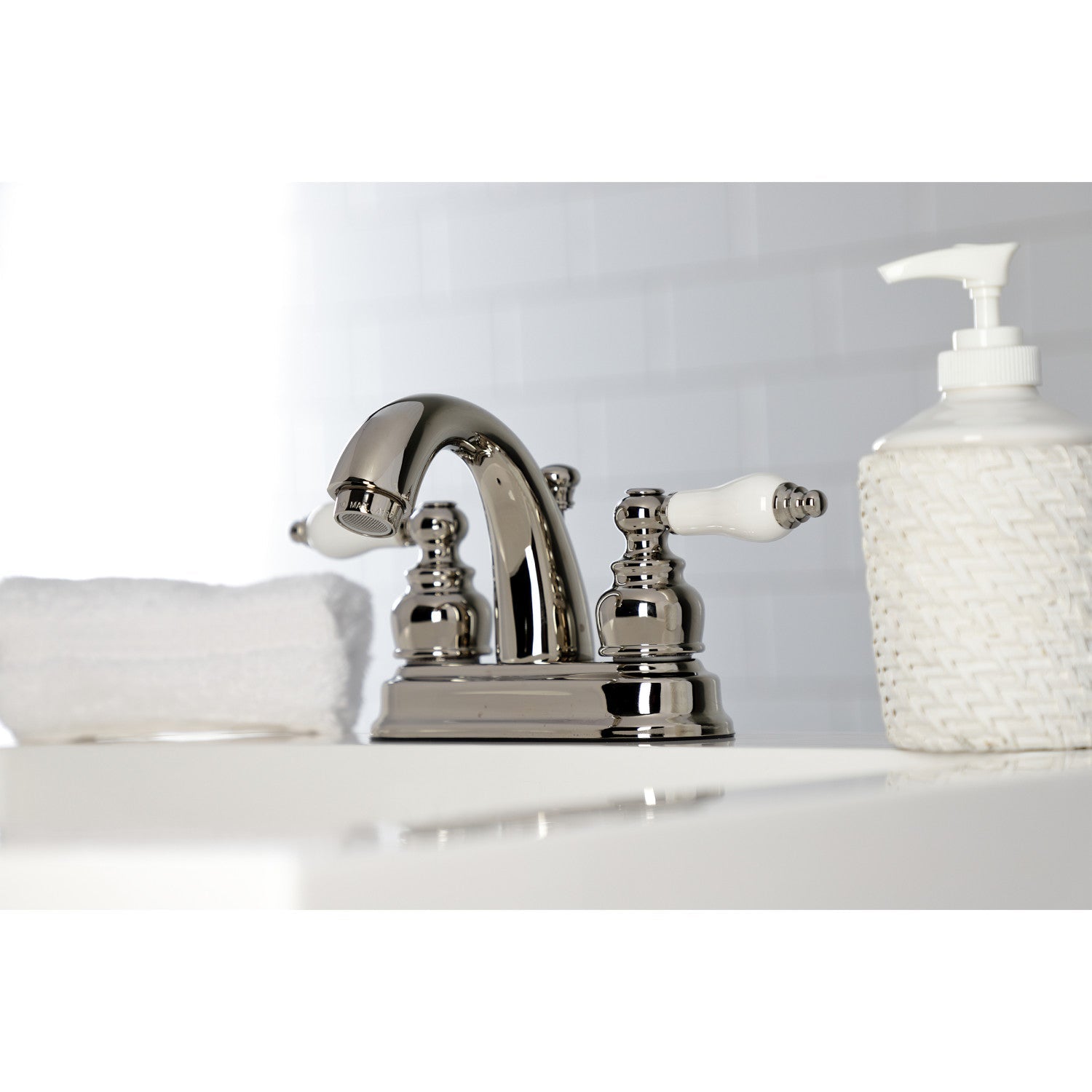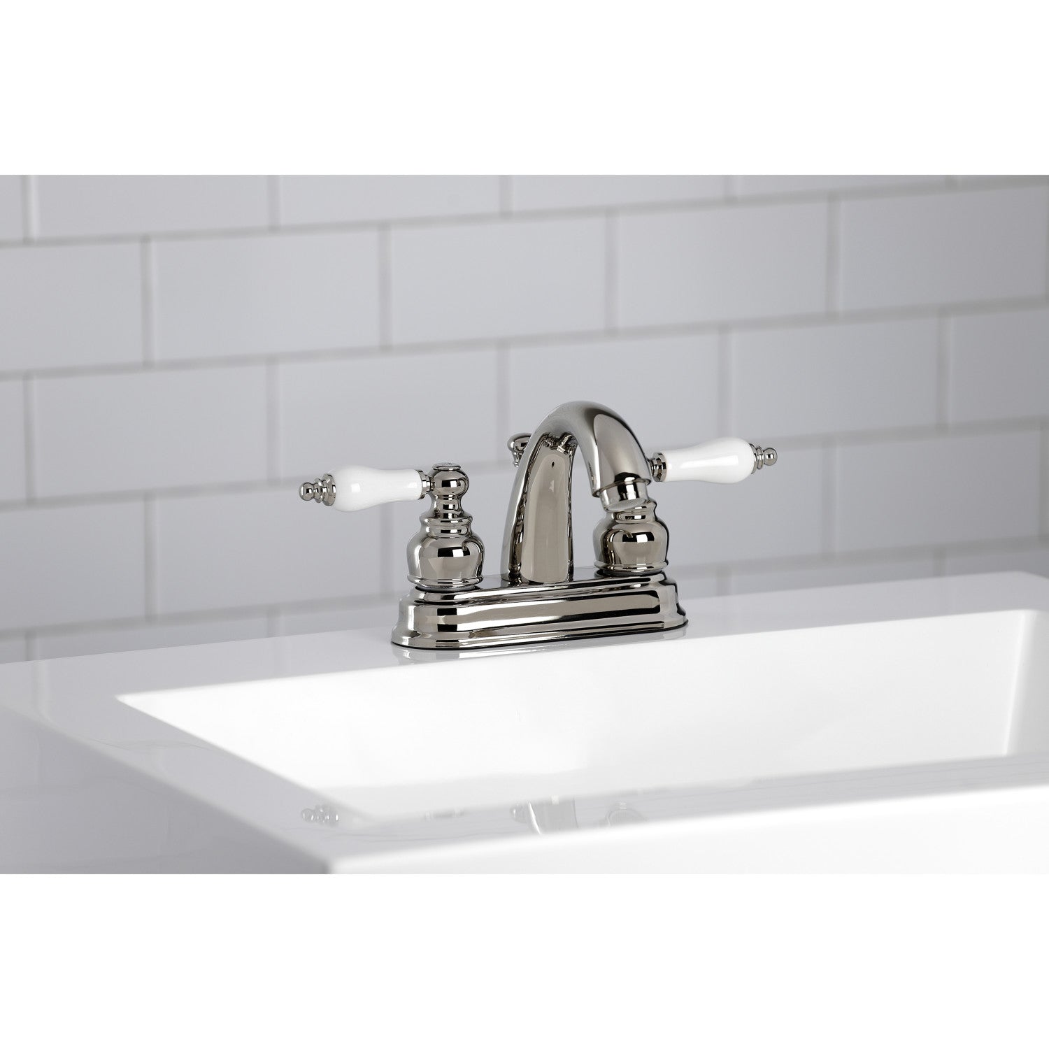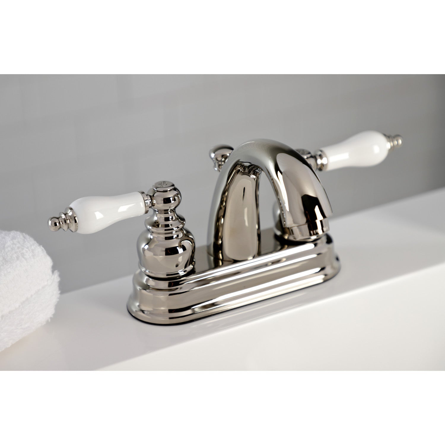 Classical artistry from the late 19th Century to early 20th Century is mirrored beautifully within this faucet's traditional charm. Centerset bathroom faucets are ideal for smaller bathrooms and feature an easy 3-hole installation. The Restoration 4-inch centerset bathroom faucet and its featured sturdy brass construction and premium polished nickel finish are guaranteed to glamorize your home's traditional ensemble for years to come. Bring this faucet to your home to offer a touch of old design and exquisite detail. A matching finish drain is also included.