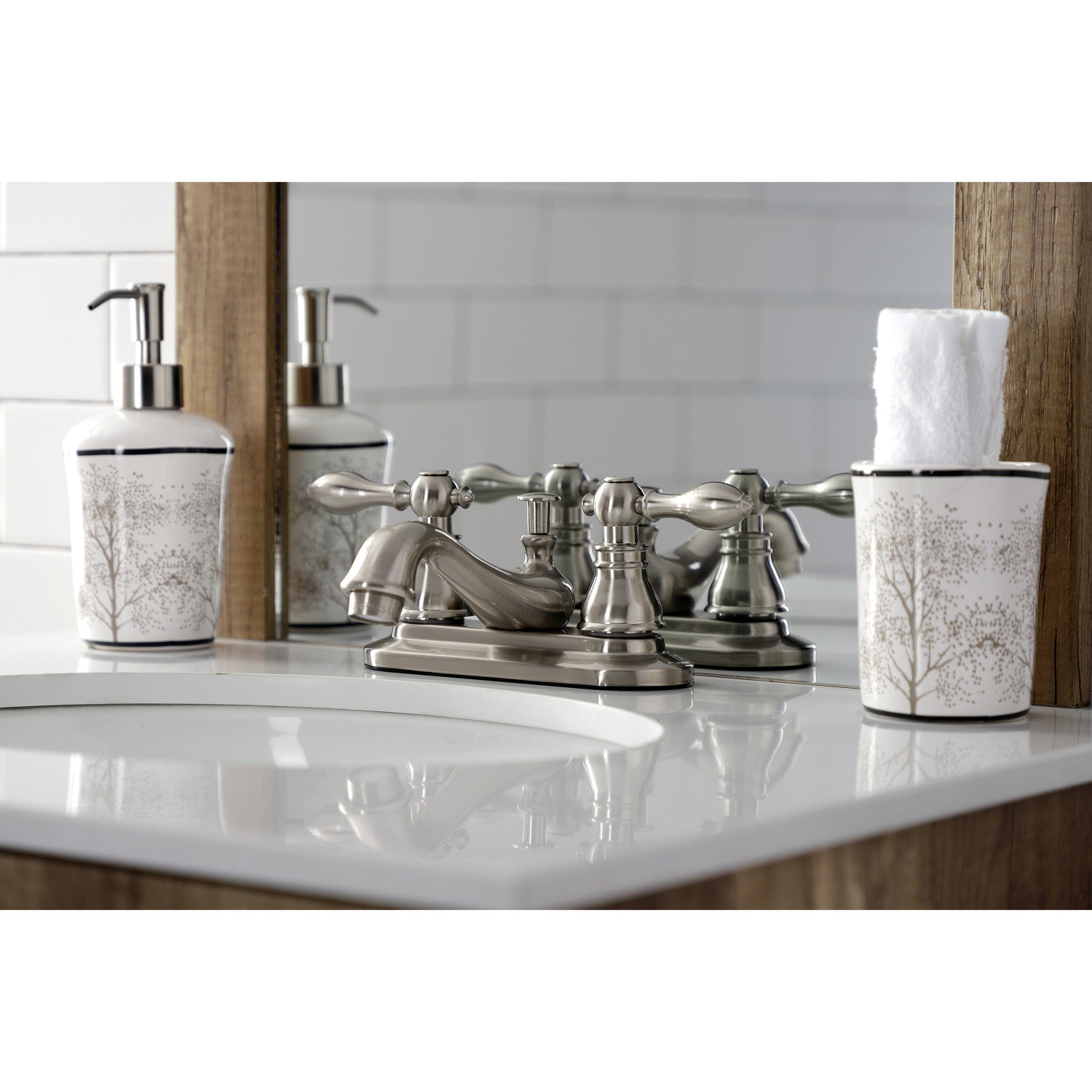 American Classic KB608ACL Two-Handle 3-Hole Deck Mount 4" Centerset Bathroom Faucet with Plastic Pop-Up, Brushed Nickel