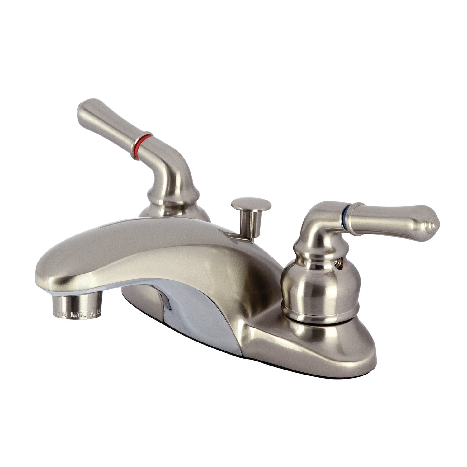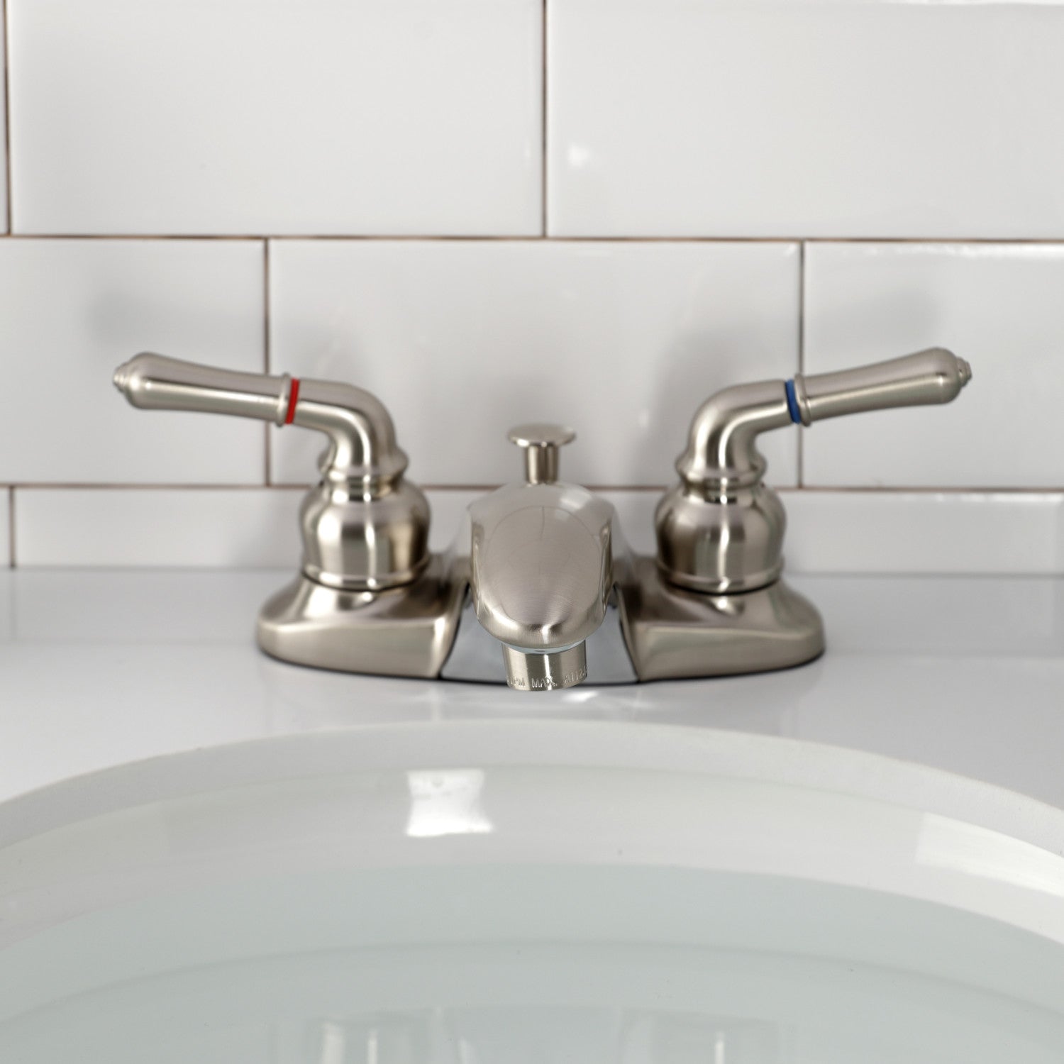 Magellan KB628 Two-Handle 3-Hole Deck Mount 4" Centerset Bathroom Faucet with Plastic Pop-Up, Brushed Nickel