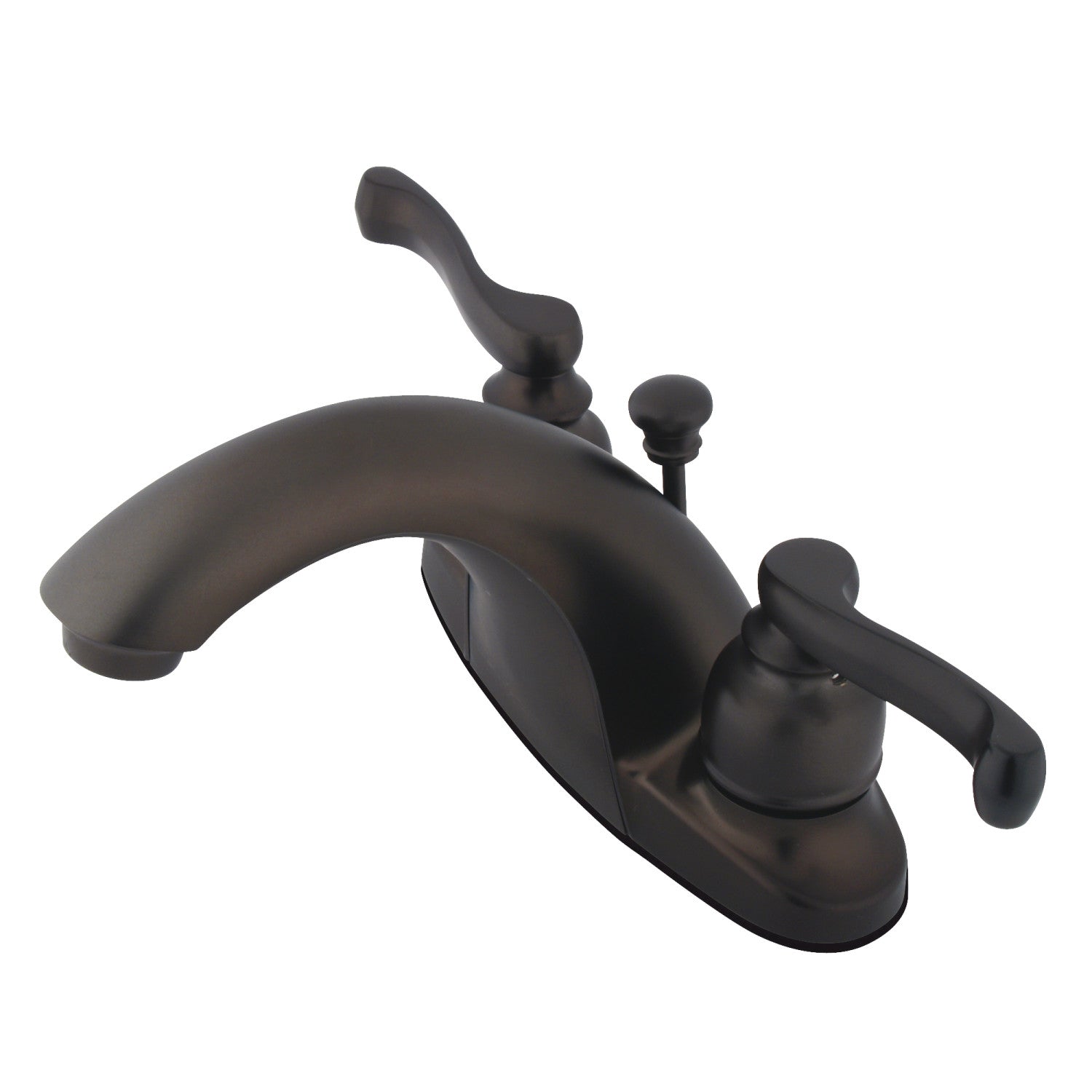 KB7645FL Two-Handle 3-Hole Deck Mount 4" Centerset Bathroom Faucet with Plastic Pop-Up, Oil Rubbed Bronze