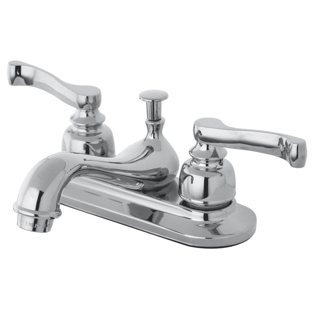 Royale KB8601 Two-Handle 3-Hole Deck Mount 4" Centerset Bathroom Faucet with Plastic Pop-Up, Polished Chrome