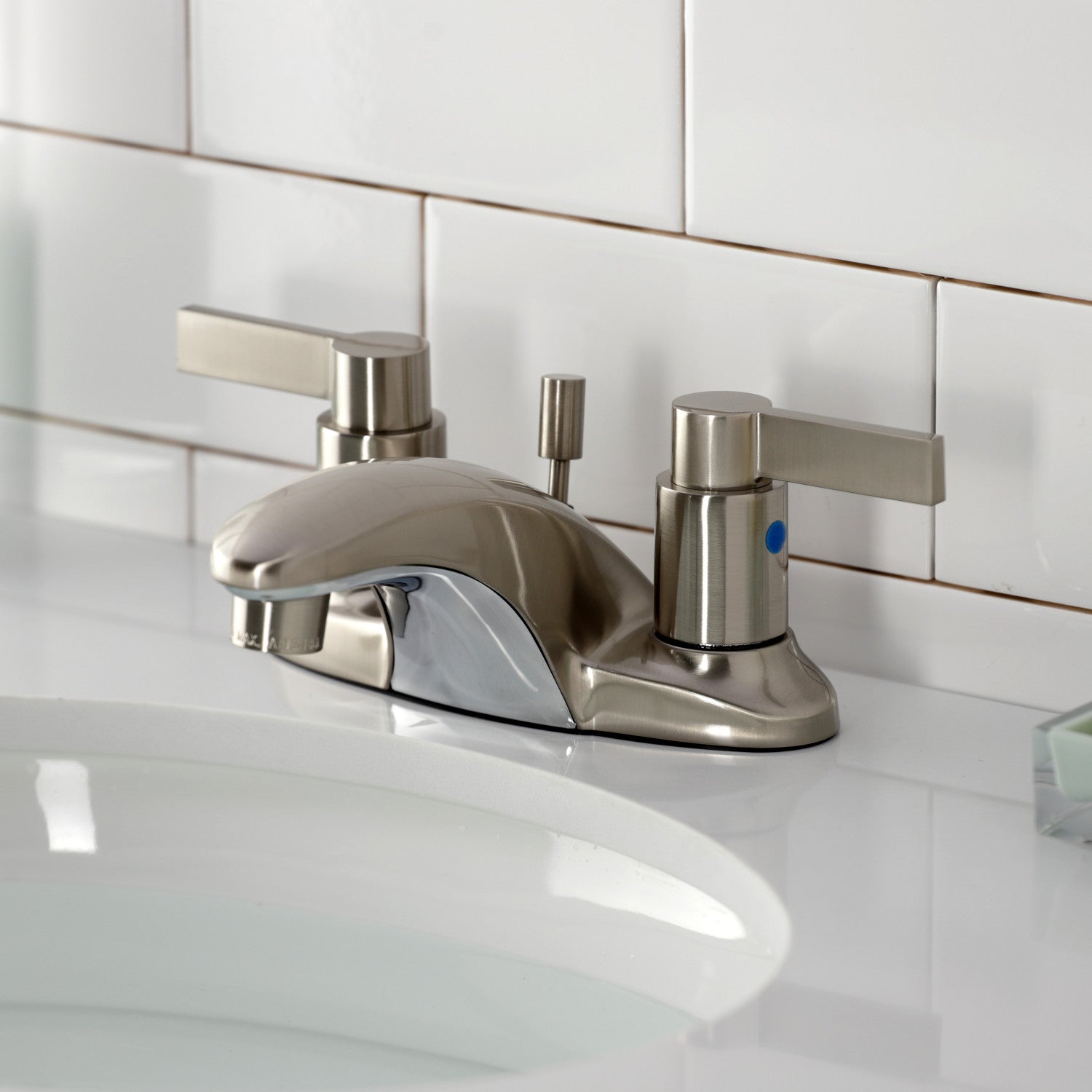 NuvoFusion KB8628NDL Two-Handle 3-Hole Deck Mount 4" Centerset Bathroom Faucet with Plastic Pop-Up, Brushed Nickel