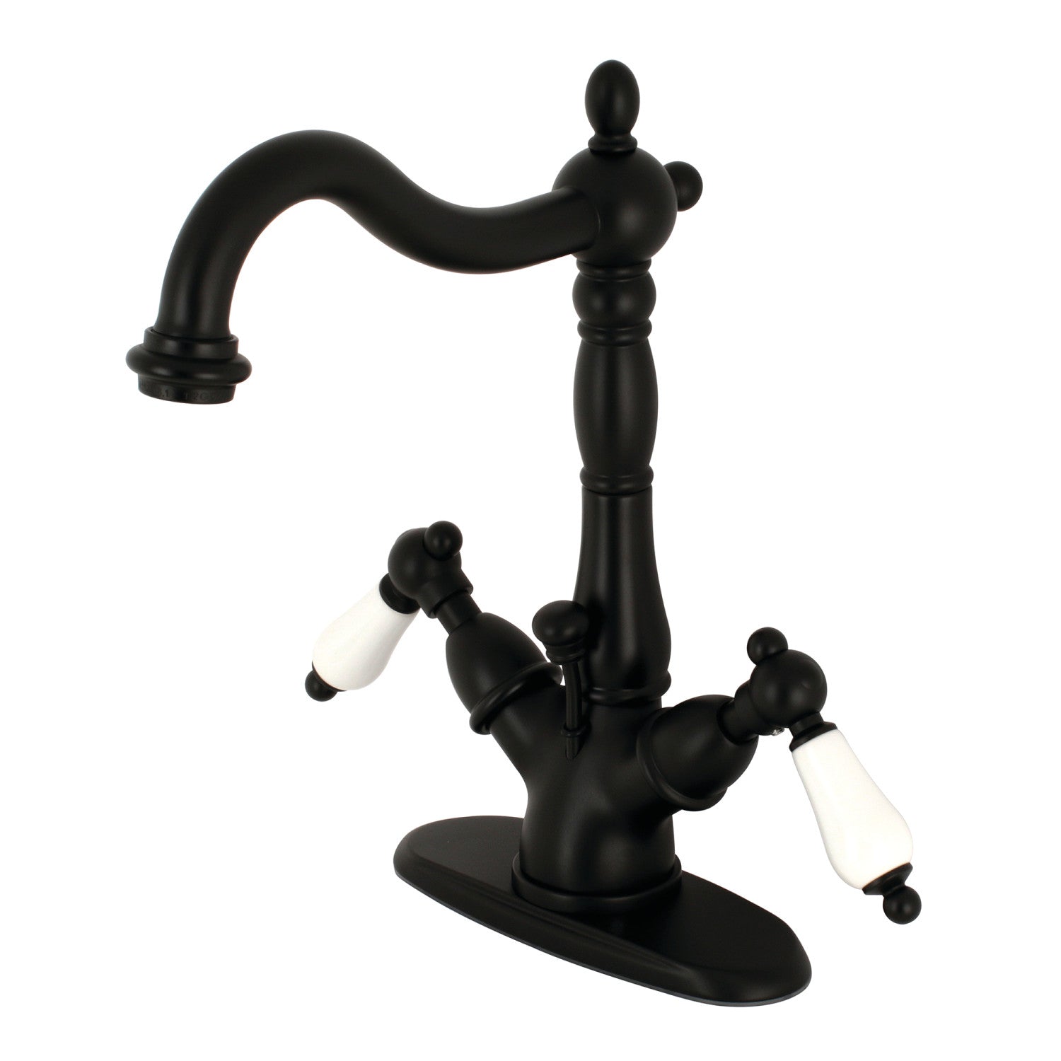 Heritage KS1430PL Two-Handle 1-or-3 Hole Deck Mount Bathroom Faucet with Brass Pop-Up, Matte Black