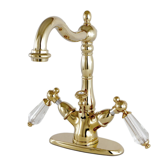 Wilshire KS1432WLL Two-Handle 1-or-3 Hole Deck Mount Bathroom Faucet with Brass Pop-Up, Polished Brass