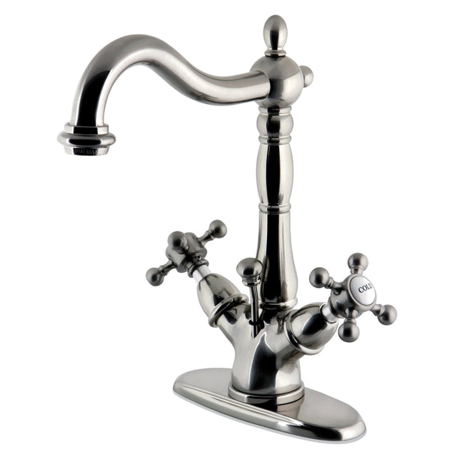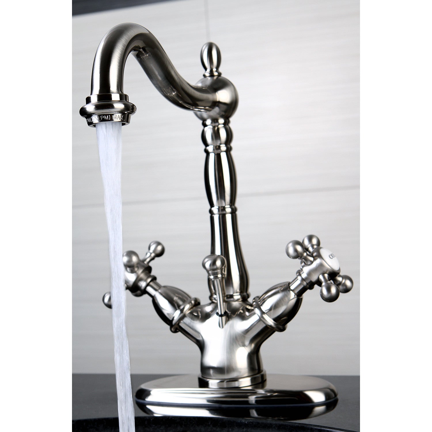 Vintage KS1438BX Two-Handle 1-or-3 Hole Deck Mount Bathroom Faucet with Brass Pop-Up, Brushed Nickel