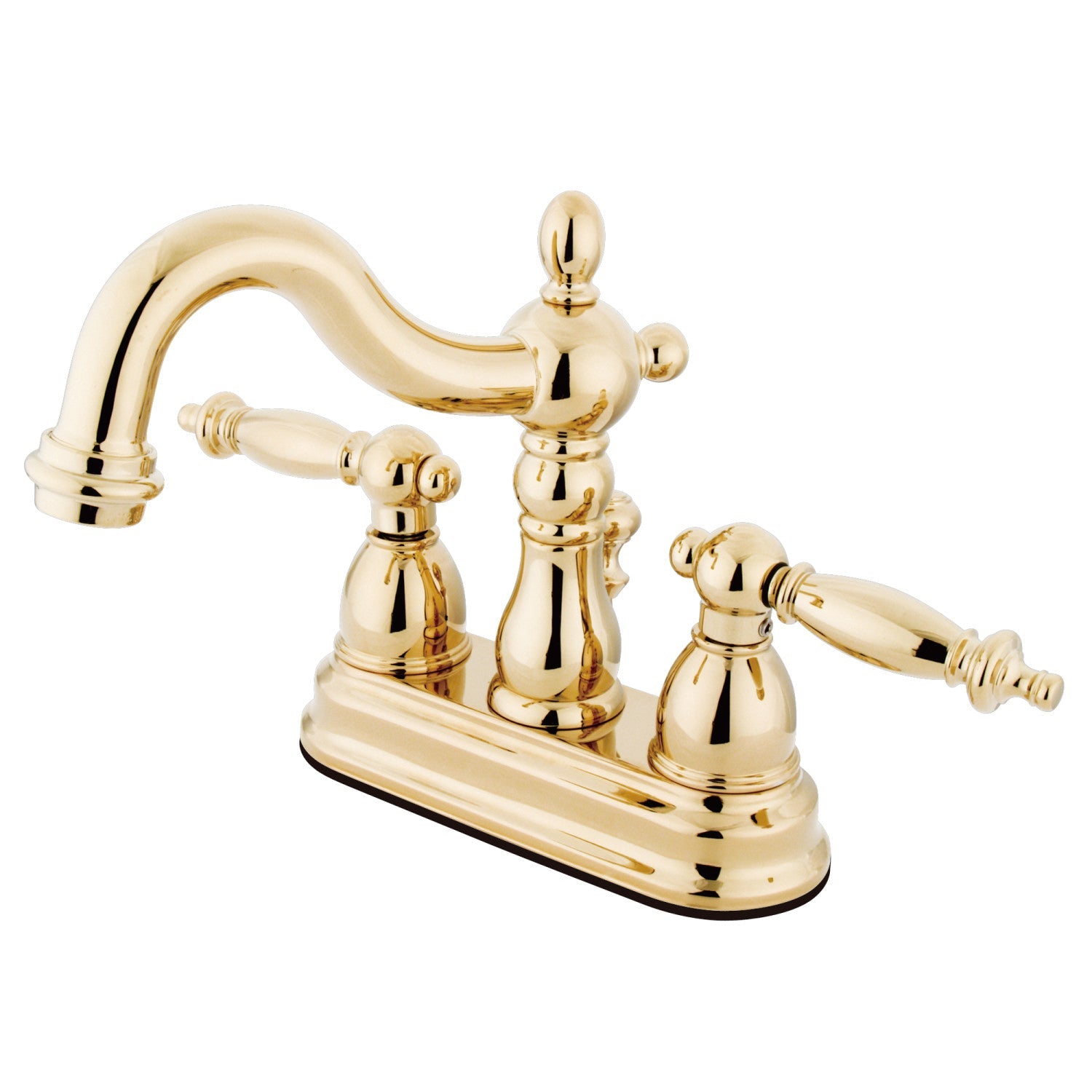 A lavish spark of traditionally stylized glamour is brought to your bathroom ensemble with this beautiful faucet. Centerset bathroom faucets are ideal for smaller bathrooms and feature an easy 3-hole installation. The Heritage 4-inch centerset bathroom faucet and its featured sturdy brass construction and premium polished brass finish are guaranteed to glamorize your home's traditional ensemble for years to come. Celebrate sophistication and traditional decor with this statement piece. A matching finish drain is also included.