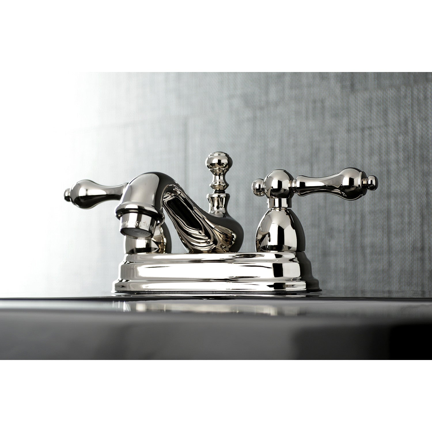 Classical artistry from the late 19th Century to early 20th Century is mirrored beautifully within this faucet's traditional charm. Centerset bathroom faucets are ideal for smaller bathrooms and feature an easy 3-hole installation. The Restoration 4-inch centerset bathroom faucet and its featured sturdy brass construction and premium polished nickel finish are guaranteed to glamorize your home's traditional ensemble for years to come. Bring this faucet to your home to offer a touch of old design and exquisite detail. A matching finish drain is also included.