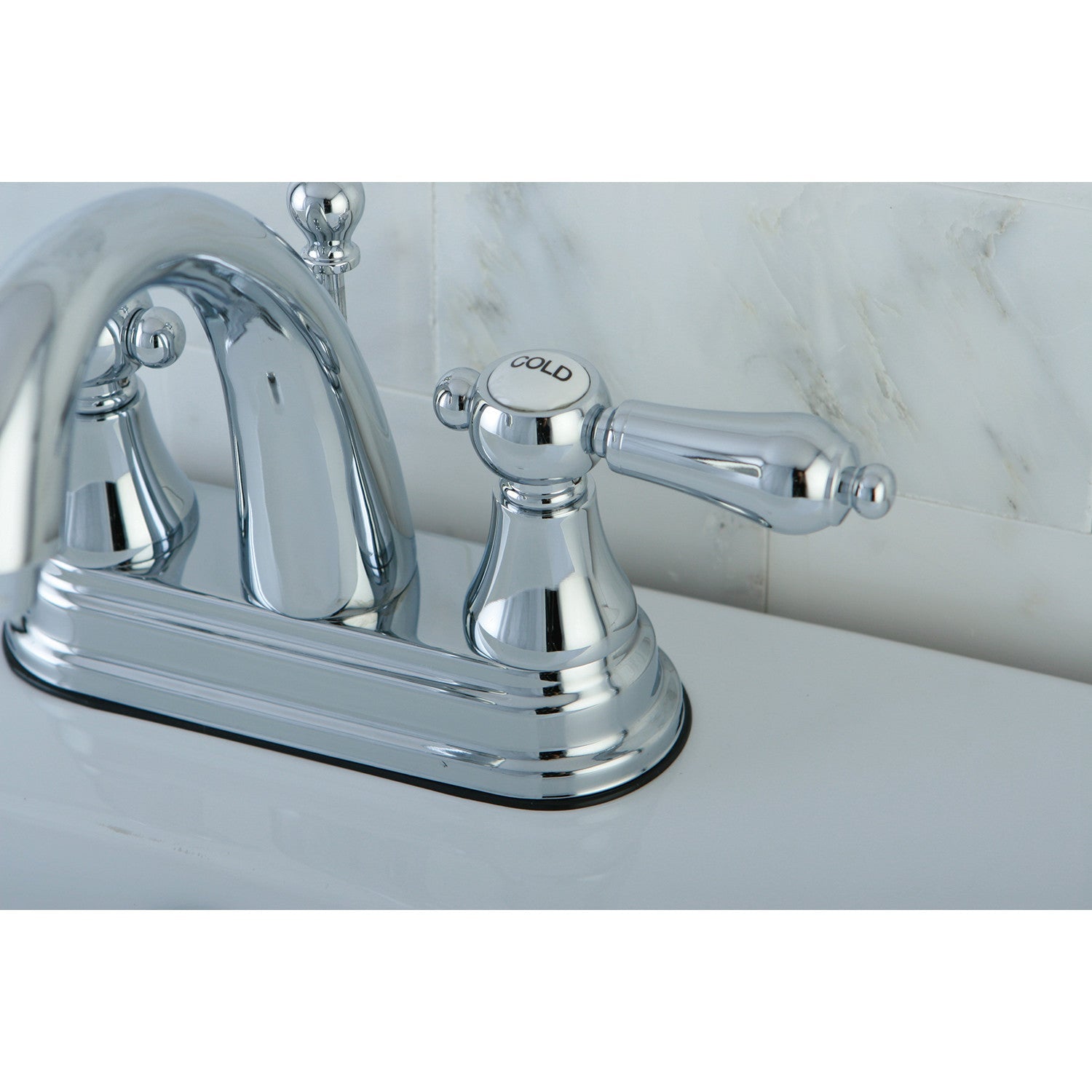 The exquisite design of this faucet tastefully flatters the elegant architecture of traditional homes with its fine detailing. Centerset bathroom faucets are ideal for smaller bathrooms and feature an easy 3-hole installation. The Kingston Brass 4-inch centerset bathroom faucet with brass pop-up and its featured sturdy brass construction and premium polished chrome finish are guaranteed to glamorize your home's traditional ensemble for years to come. A matching finish drain is also included.