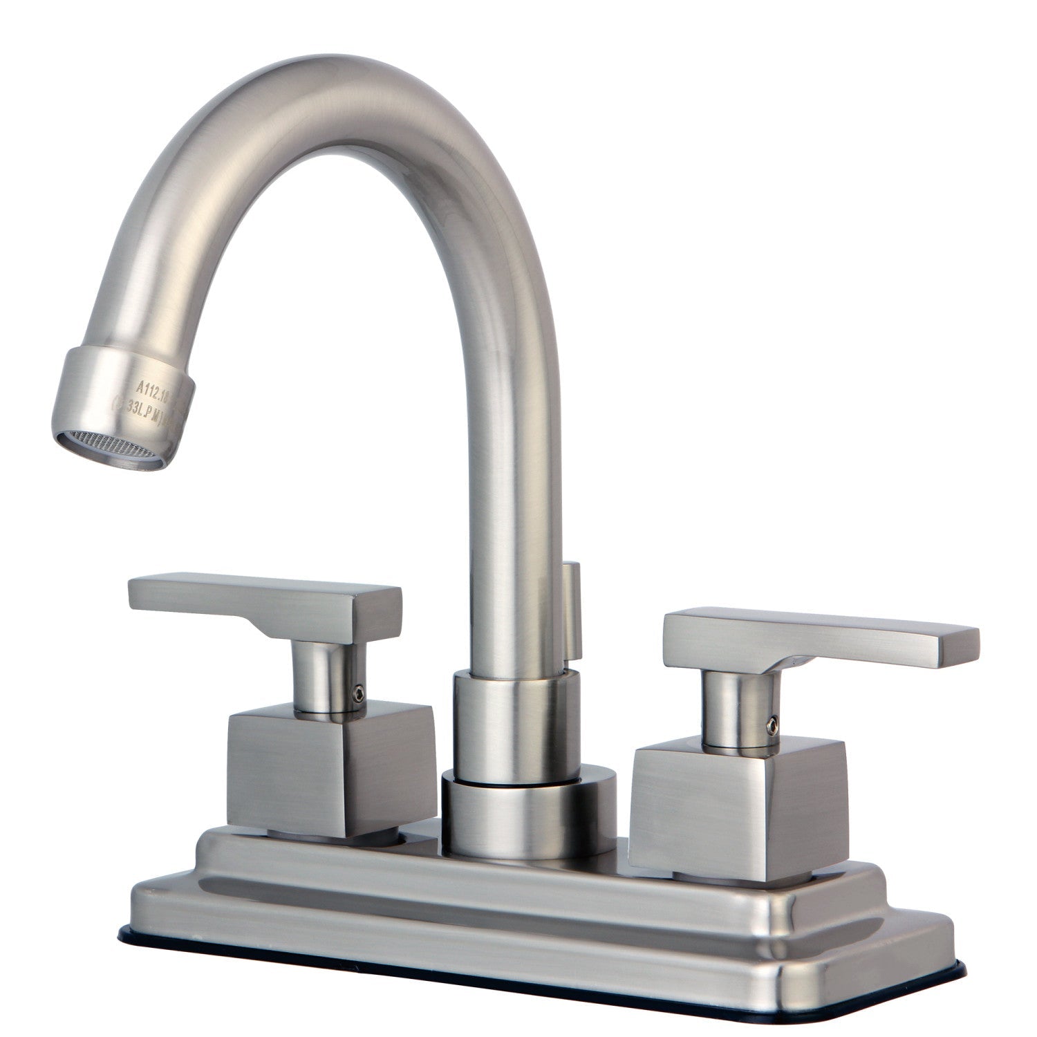 Executive KS8668QLL Two-Handle 3-Hole Deck Mount 4" Centerset Bathroom Faucet with Brass Pop-Up, Brushed Nickel