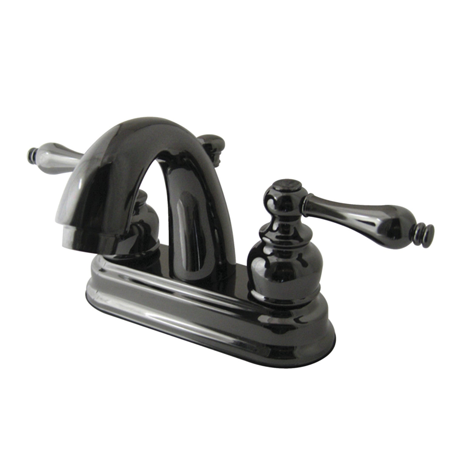 Inspired by nature's powerful color of the black onyx stone, vivid and unique color is brought to life in this faucet's features. Centerset bathroom faucets are ideal for smaller bathrooms and feature an easy 3-hole installation. The Water Onyx 4-inch centerset bathroom faucet with retail pop-up and its featured sturdy brass construction and premium black stainless steel finish are guaranteed to glamorize your home's traditional ensemble for years to come. Emulate the deep tones and power of the onyx stone with this faucet. A matching finish drain is also included.
