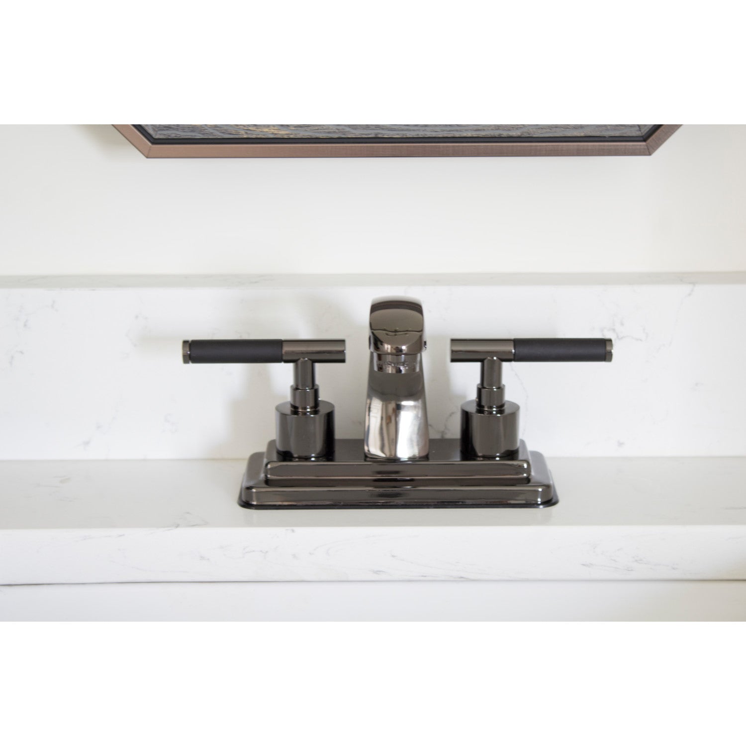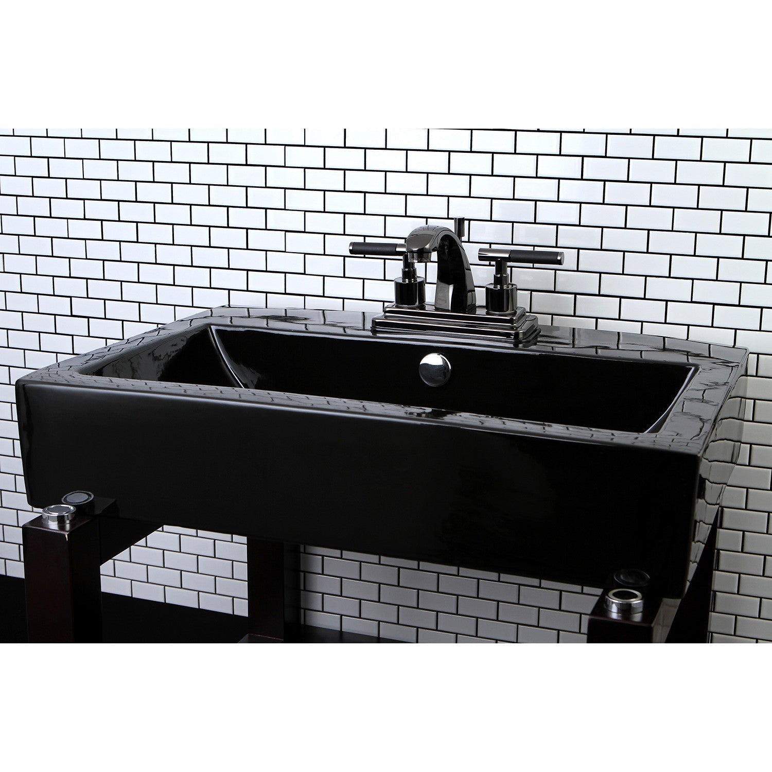 Inspired by nature's powerful color of the black onyx stone, vivid and unique color is brought to life in this faucet's features. Centerset bathroom faucets are ideal for smaller bathrooms and feature an easy 3-hole installation. The Water Onyx 4-inch centerset bathroom faucet with brass pop-up and its featured sturdy brass construction and premium black stainless steel finish are guaranteed to glamorize your home's traditional ensemble for years to come. Emulate the deep tones and power of the onyx stone with this faucet. A matching finish drain is also included.