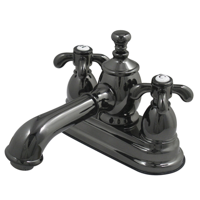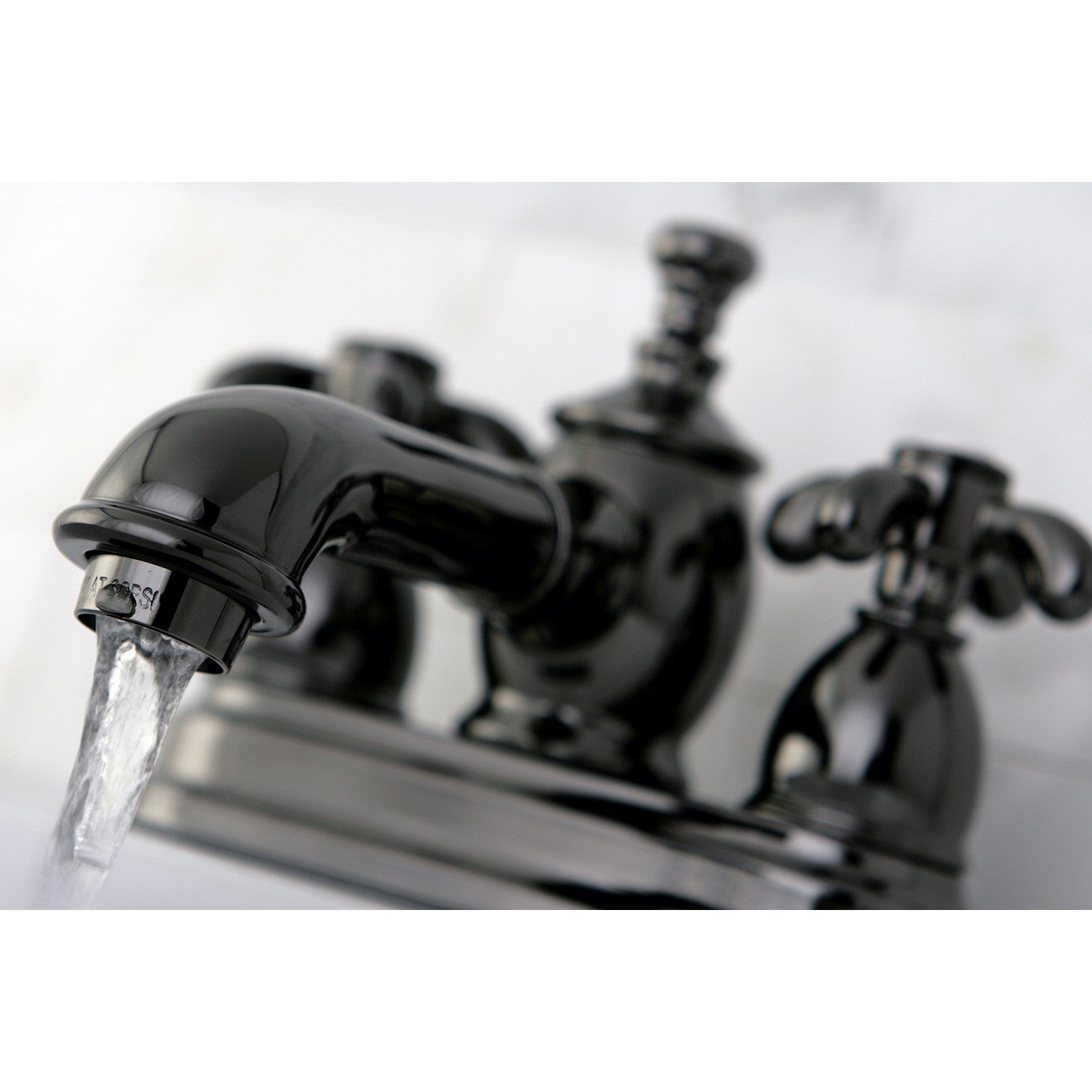Water Onyx NS7000TX Two-Handle 3-Hole Deck Mount 4" Centerset Bathroom Faucet with Brass Pop-Up, Black Stainless Steel